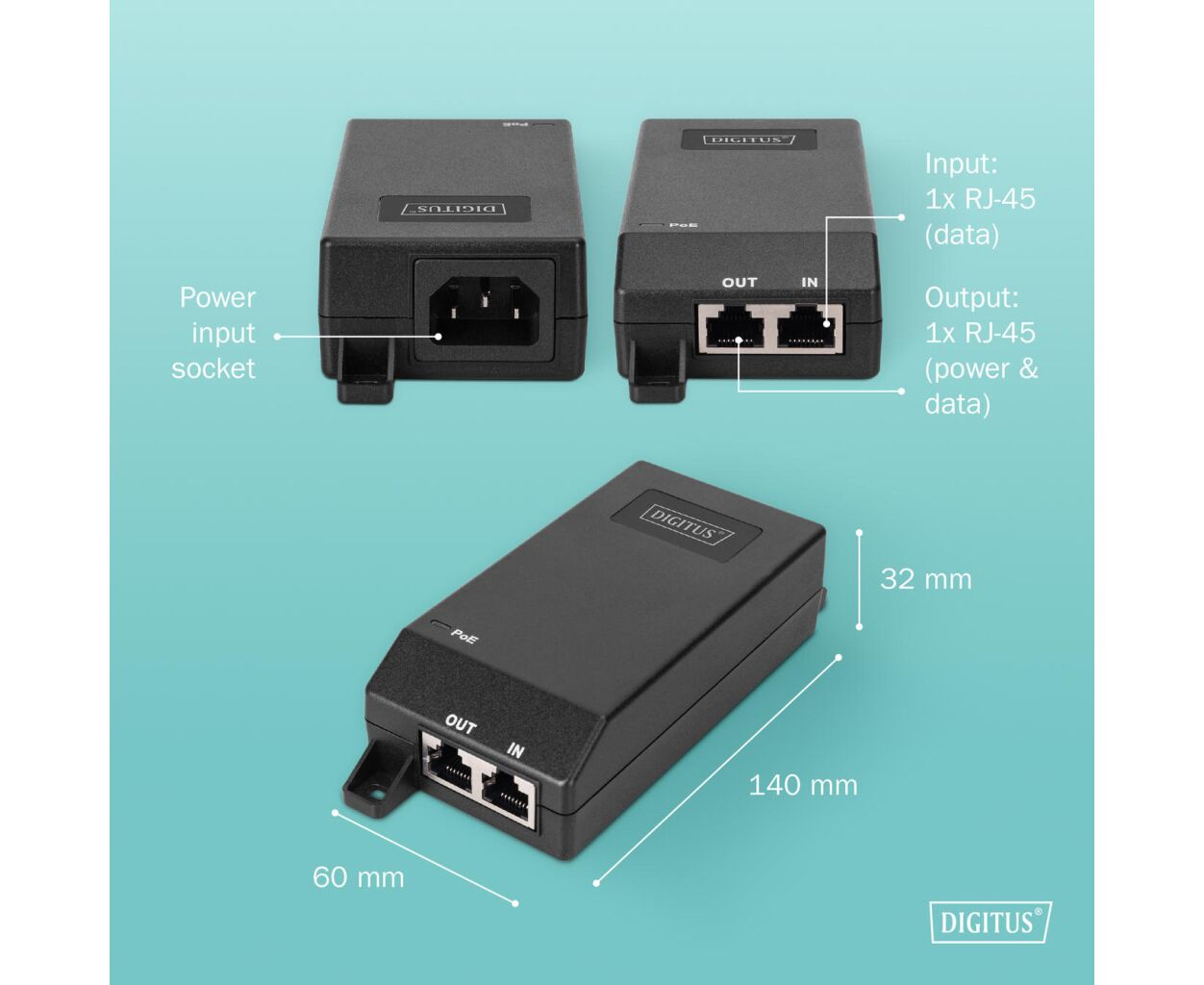 Описание Адаптер PoE Digitus DN-95103-3