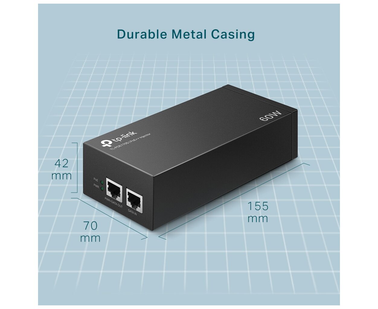 стандарт связи - IEEE 802.3af, IEEE 802.3at, IEEE802.3bt, размеры, мм - 155 x 70 x 42
