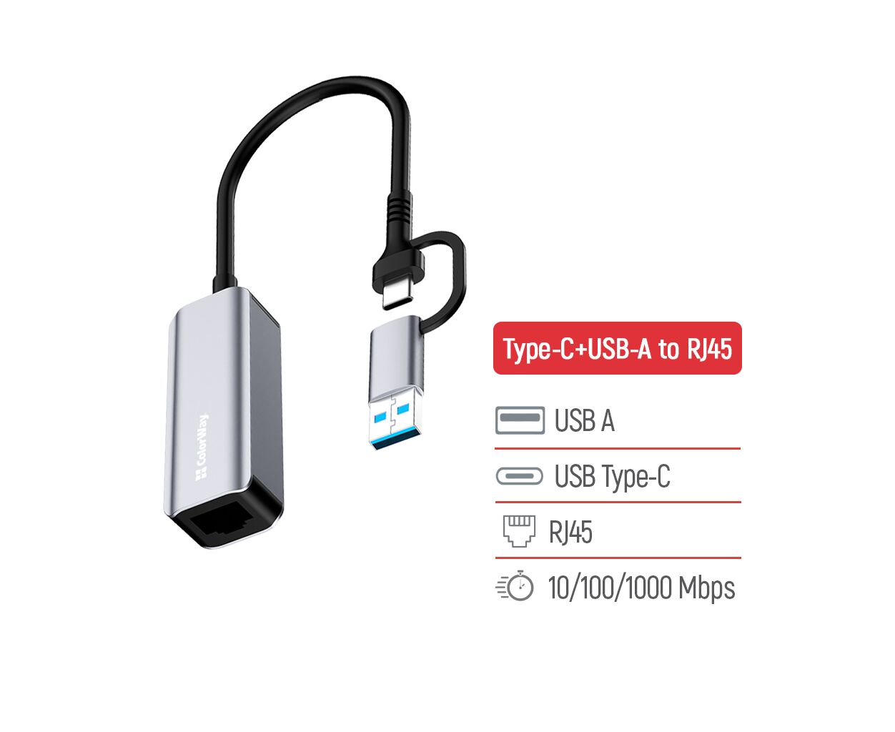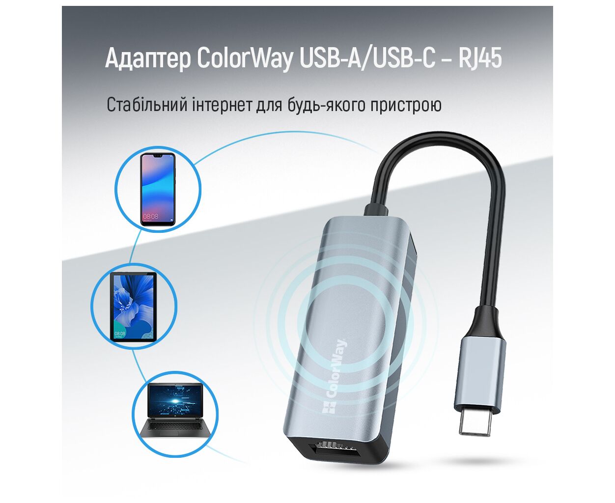 Адаптер USB-C + USB A to RJ45 Ethernet 1000Mbps ColorWay (CW-AD-CRG)