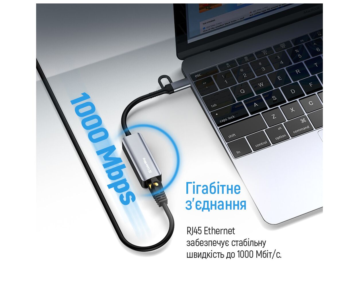 USB-C + USB A to RJ45 Ethernet 1000Mbps