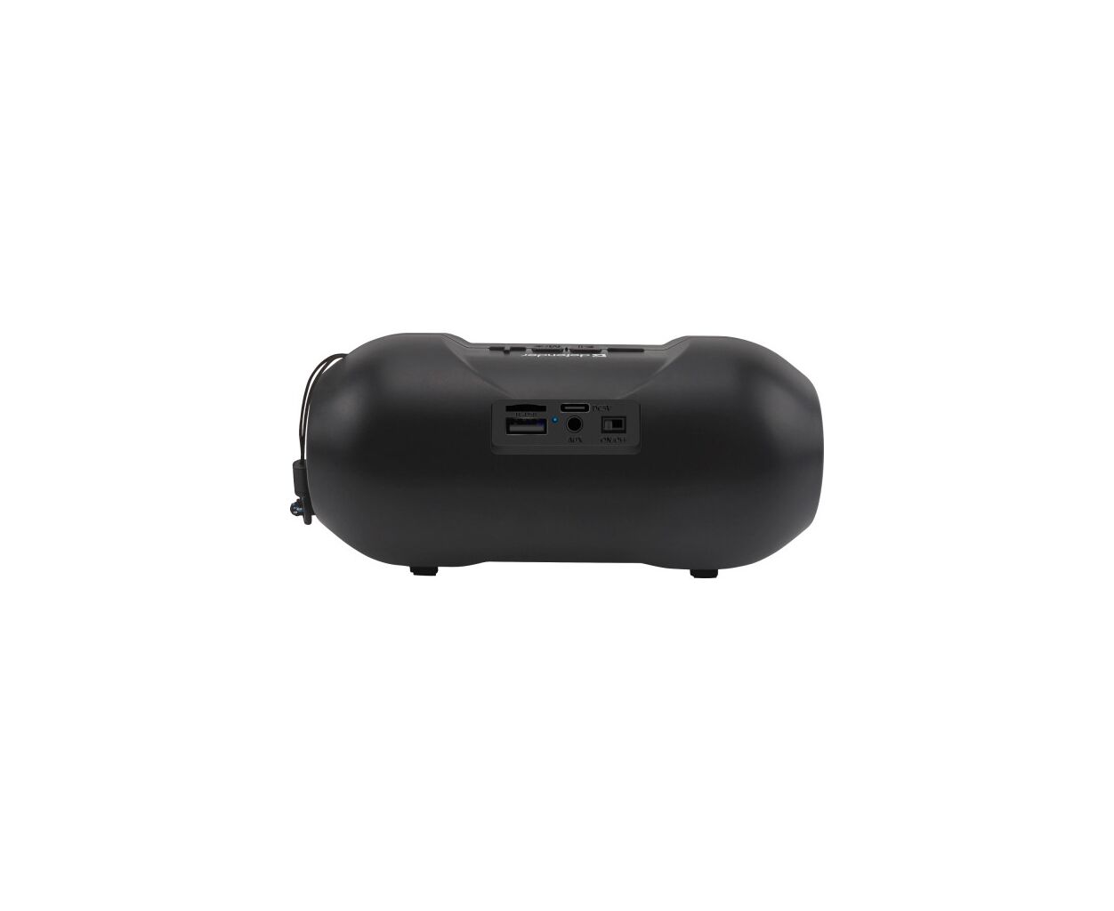 Благодаря прорезиненному корпусу, акустическая система защищена от водяных брызг, поэтому вы сможете использовать её на улице без лишних волнений. Высокоэффективный литий-ионный аккумулятор обеспечивает до 9 часов автономной работы, что незаменимо во время путешествий или долгих вечеринок. Быстрая зарядка через порт USB-C (5V) вернет энергию системе за короткое время.
