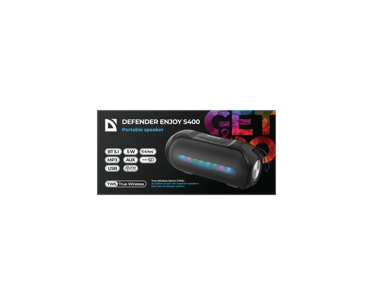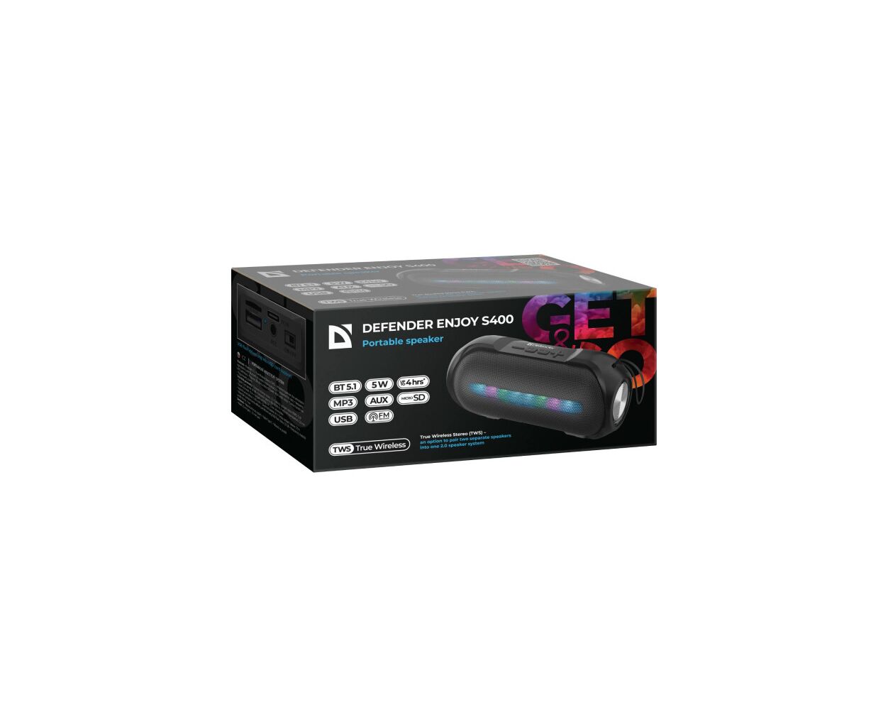 Практичность дополняют резиновые ножки, которые предотвращают скольжение по поверхностям, и удобная ручка для переноски. Все это делает Defender Enjoy S400 не просто колонкой, а незаменимым компаньоном в вашем ежедневном приключении со звуком.