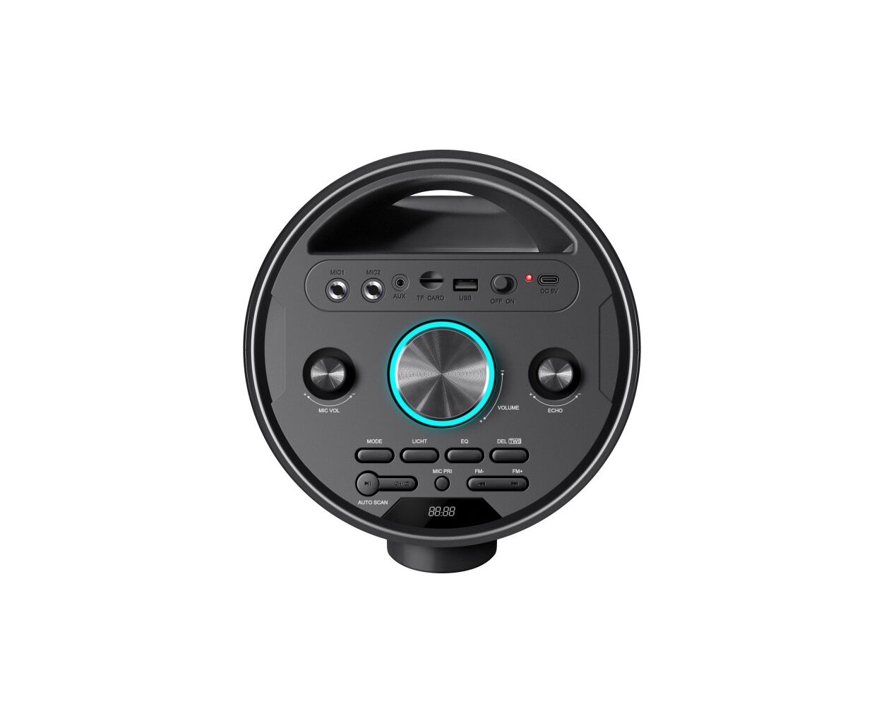 Особенностью этой акустической системы является возможность создать настоящий стереозвук с функцией True Wireless Stereo (TWS), объединяя две отдельные колонки по Bluetooth в систему 2.0. Таким образом, вы можете организовать атмосферу полноценного праздника прямо у себя дома или на улице. Достигайте максимума эмоций, легко подключая до двух микрофонов для проведения торжественных мероприятий или караоке.