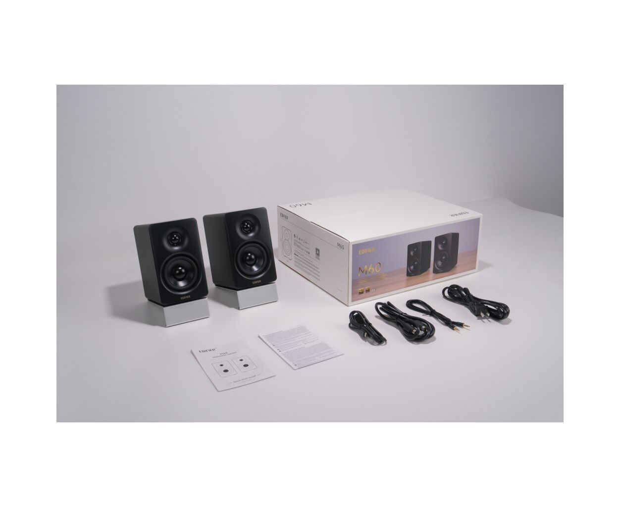 Edifier M60 — это компактные настольные колонки, созданные для воспроизведения высококачественного Hi-Res аудио. Сочетание мощности и изящного дизайна делает их отличным дополнением к любому рабочему месту или игровой зоне.