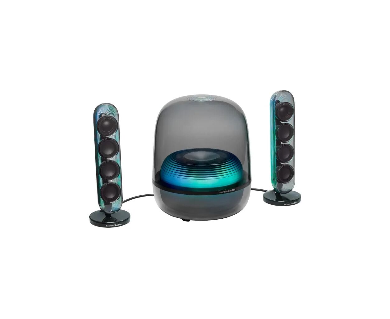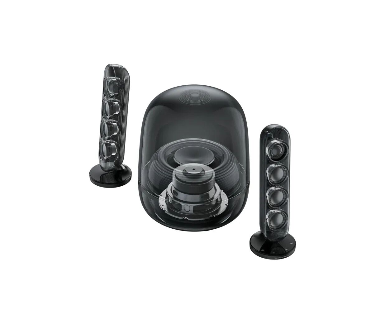 SoundSticks 5 представляет собой усовершенствованный культовый дизайн SoundSticks благодаря полностью прозрачному куполу в стильных оттенках на ваш выбор, подчеркнутому изысканными металлическими акцентами. Приподнятый сабвуфер добавляет изысканности внешнему виду, а продуманные функции, такие как элегантный остров подключения и интуитивно понятное сенсорное управление на основании правой колонки, делают использование простым и удобным.