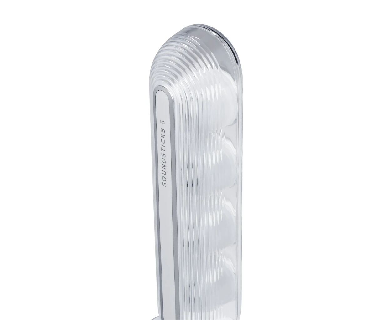 SoundSticks 5 представляет собой усовершенствованный культовый дизайн SoundSticks благодаря полностью прозрачному куполу в стильных оттенках на ваш выбор, подчеркнутому изысканными металлическими акцентами. Приподнятый сабвуфер добавляет изысканности внешнему виду, а продуманные функции, такие как элегантный остров подключения и интуитивно понятное сенсорное управление на основании правой колонки, делают использование простым и удобным.