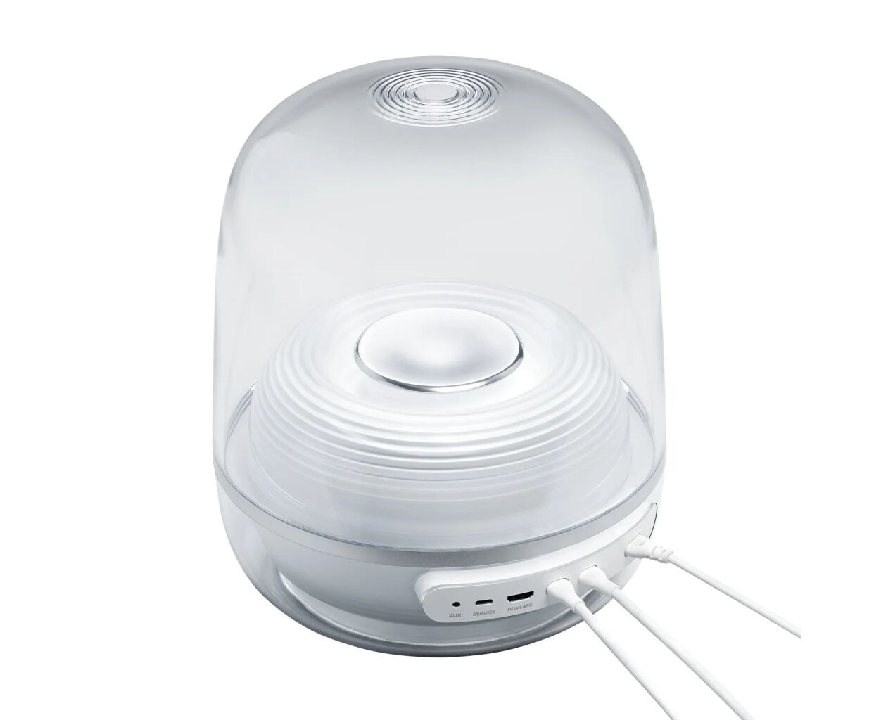 Представьте себе спокойный ужин с друзьями, где музыка льётся так же легко и плавно, как и разговор. Или уютный вечер на двоих, где ваш самый романтичный плейлист задаёт настроение, а эффектное освещение создаёт умиротворяющую атмосферу. Благодаря своему культовому прозрачному куполу и элегантным изгибам, Harman Kardon SoundSticks 5 добавит вневременной стиль любой комнате.