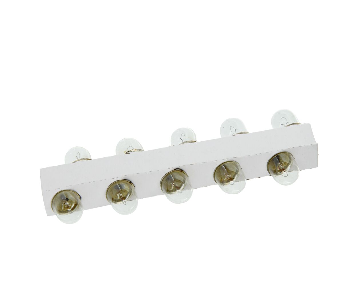 Лампочка накаливания с неокрашенной, прозрачной колбой. Потребляемая мощность 5 Вт, дает силу светового потока достаточную, для выполнения своей функции. Рабоче напряжение 12 В, предназначена для установки в легковые автомобили. Конструкция лампочек прочная, устойчивая к вибрациям, а так же с хорошей теплопроводностью. Срок эксплуатации в среднем 2000 часов.
