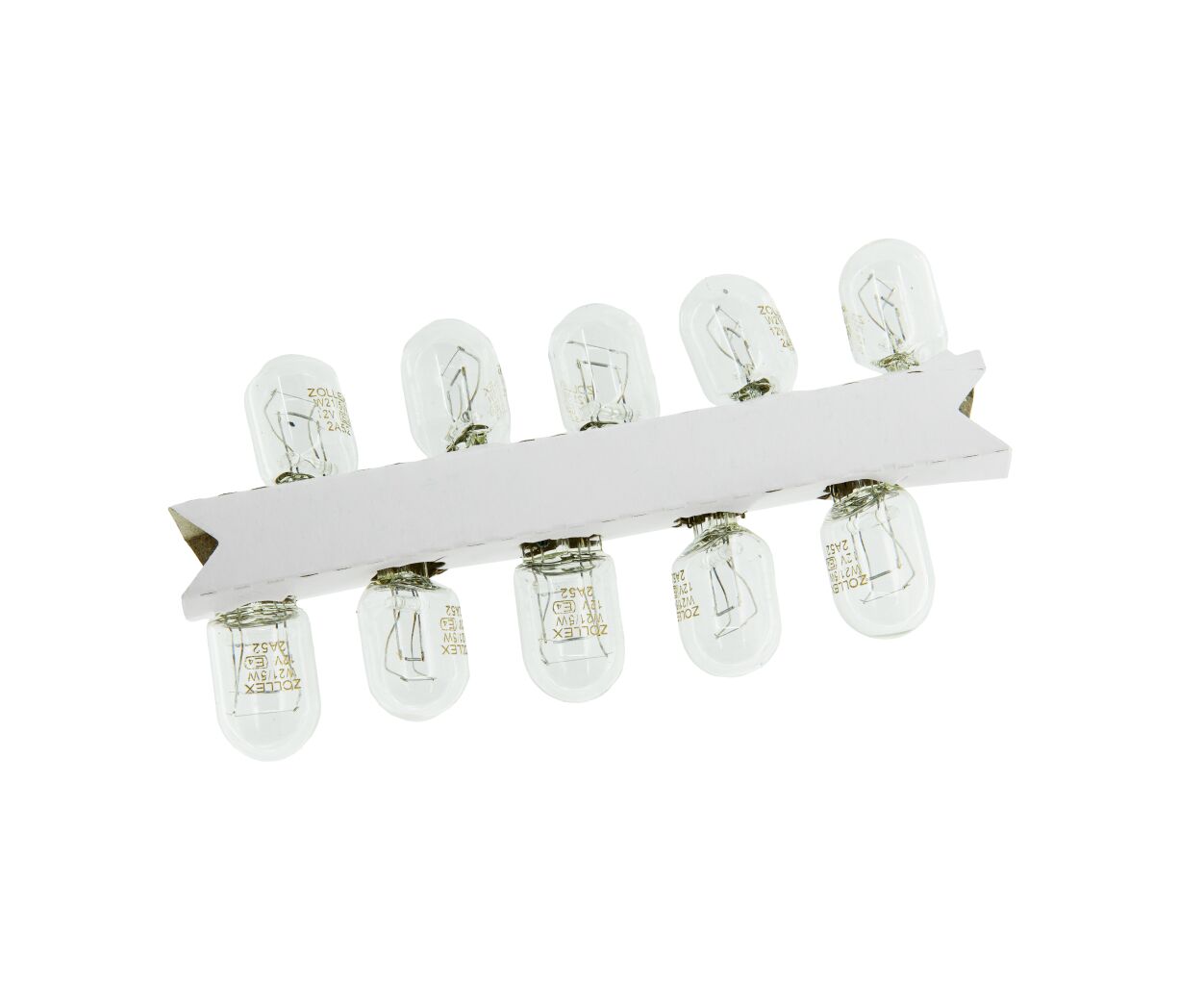 Лампочка накаливания с неокрашенной, прозрачной колбой. При потребляемой мощности 21 Вт, дает силу светового потока 440 Лм, а при мощности 5 Вт - сила светового потока 35 Лм. Этого достаточно, для выполнения своей функции. Рабоче напряжение 12 В, предназначена для установки в легковые автомобили. Конструкция лампочек прочная, устойчивая к вибрациям, а так же с хорошей теплопроводностью. Срок эксплуатации в среднем 2000 часов.