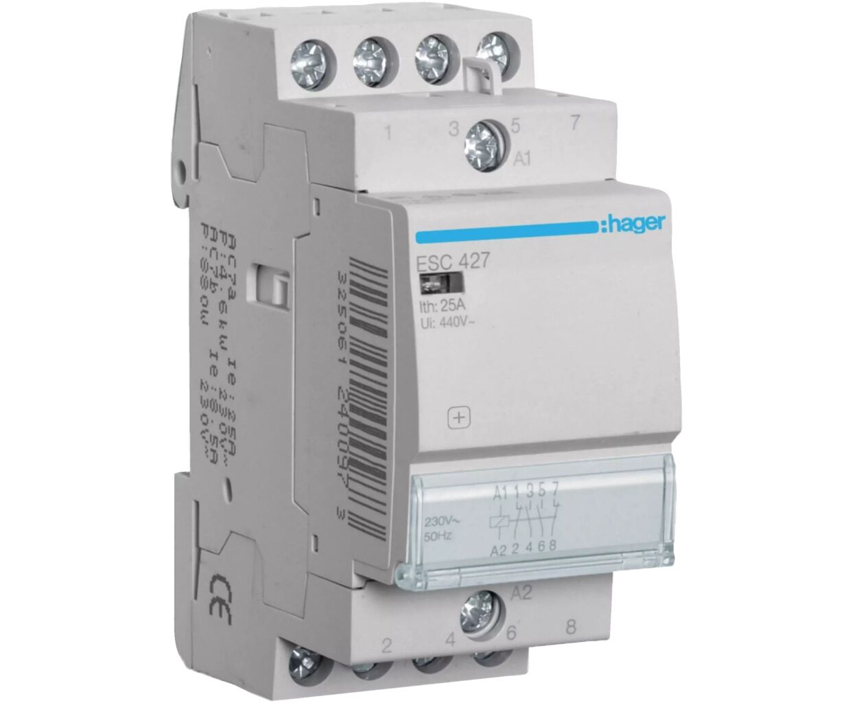 Описание Автоматический выключатель Hager 25 A 230V 2NO+2NC 2P (B) (ESC427)