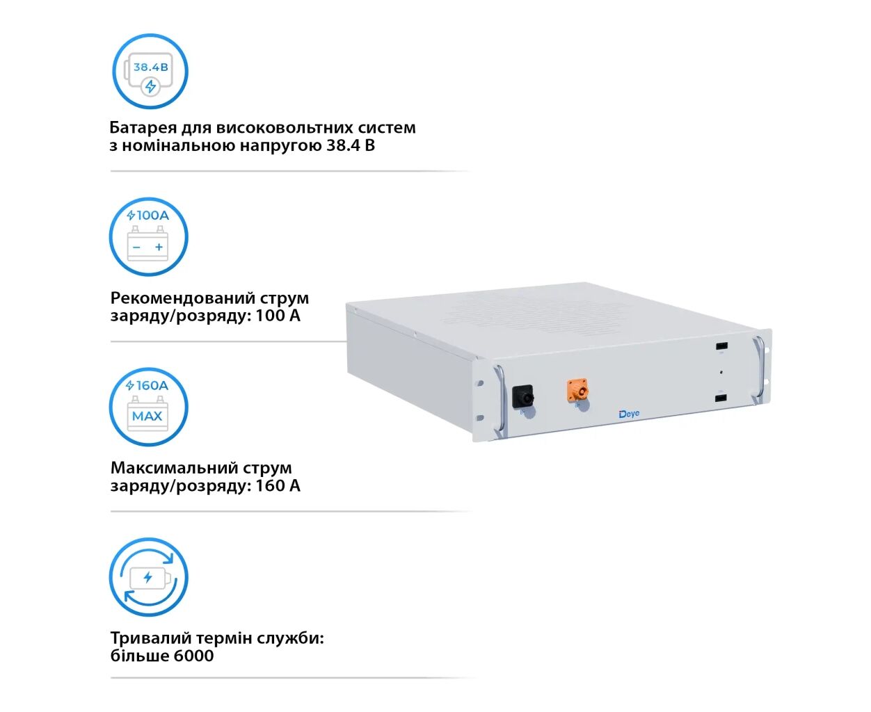 Характеристики Батарея LiFePo4 Deye BOS-A 38.4V - 200Ah (BOS-A)