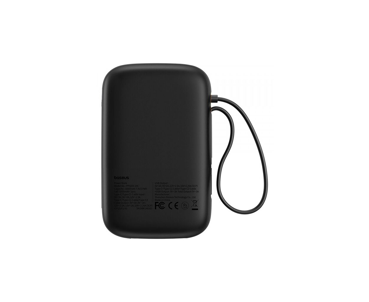 Описание Батарея универсальная Baseus 10000mAh Qpow 2 30W PD/3.0, QC/3.0, w/built-in USB-C cable, Black (P10055008113)
