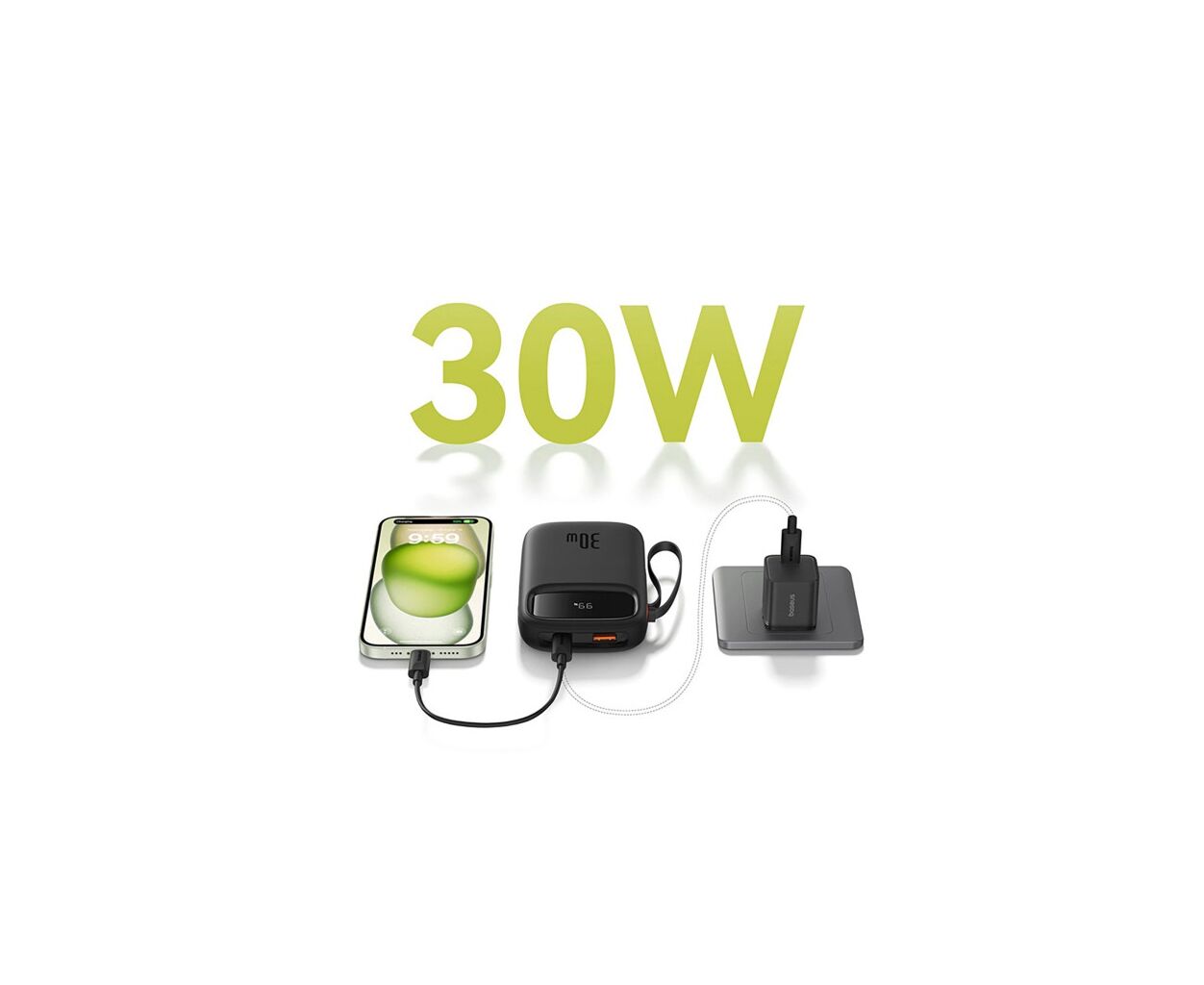 При зарядке одного устройства порт и кабели USB Type-C работают с зарядной мощностью до 30 Вт, порт USB Type-А – с максимальной мощностью 22,5 Вт.