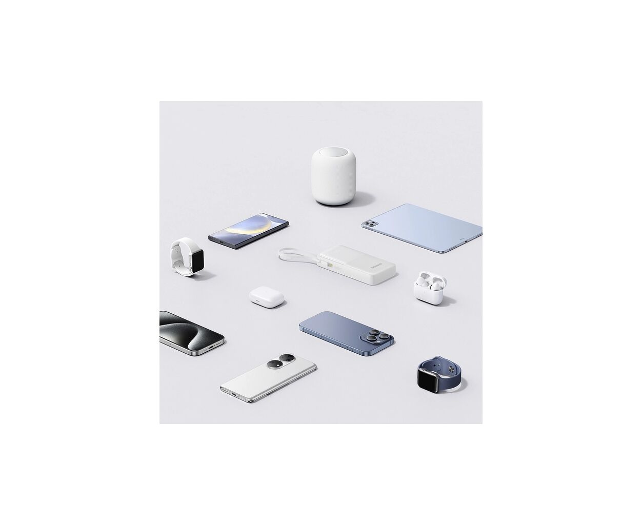 Baseus Bipow 2 оснащен двумя выходными портами (USB и USB-C) и встроенным кабелем, что позволяет заряжать до трех устройств одновременно. Это оптимальное решение для тех, кто пользуется несколькими гаджетами или желает поделиться энергией с другими.