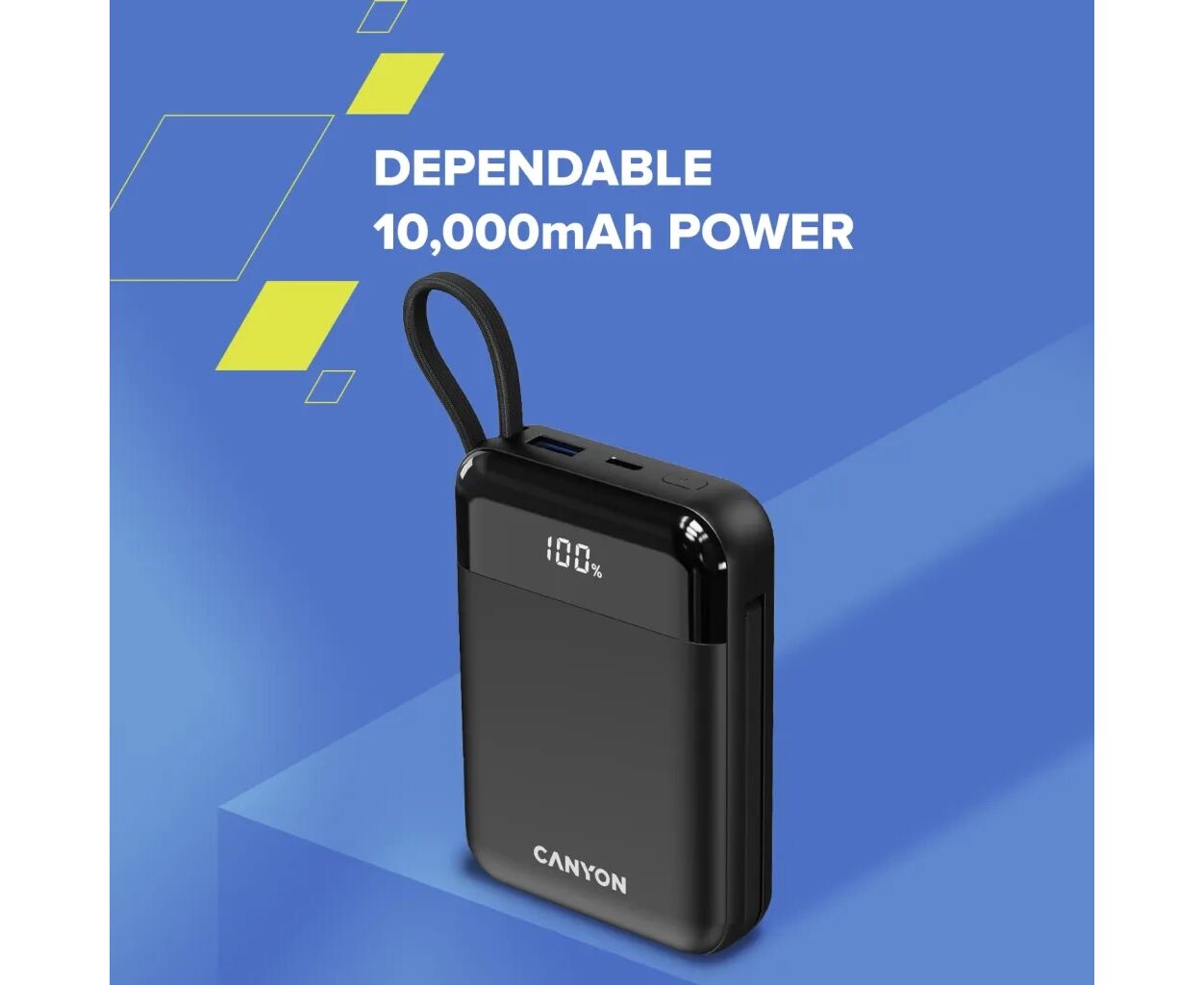 Описание Батарея универсальная Canyon 10000mAh OnPower 104 PD/20W, QC/22.5W built-in cable Black (CNS-CPB104B)