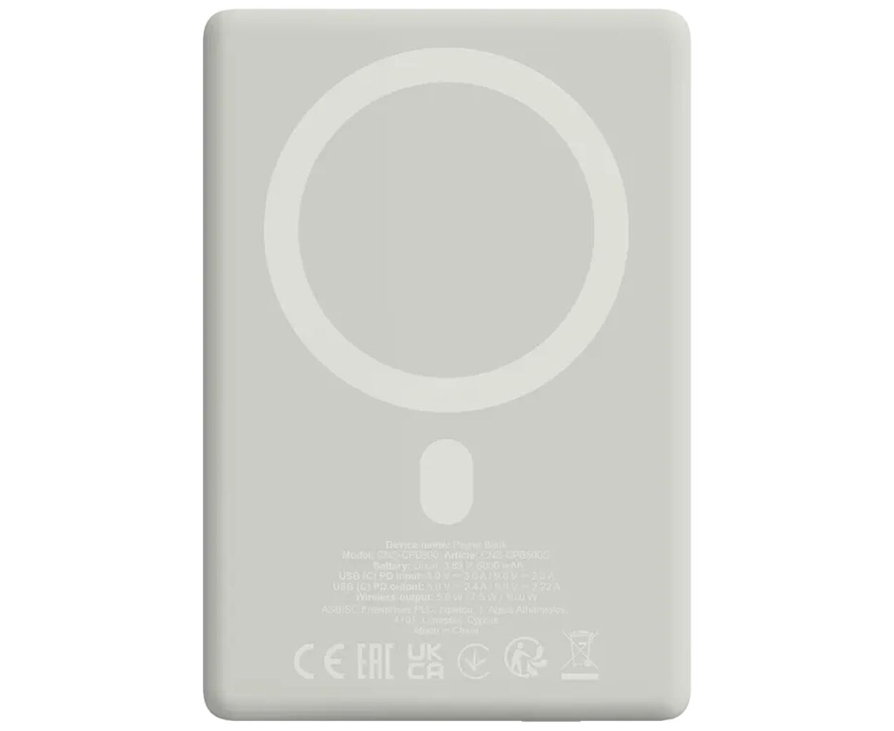 Характеристики Батарея универсальная Canyon 5000mAh OnPower 500 PD20W Magnetic wireless MagSafe Grey (CNS-CPB500G)