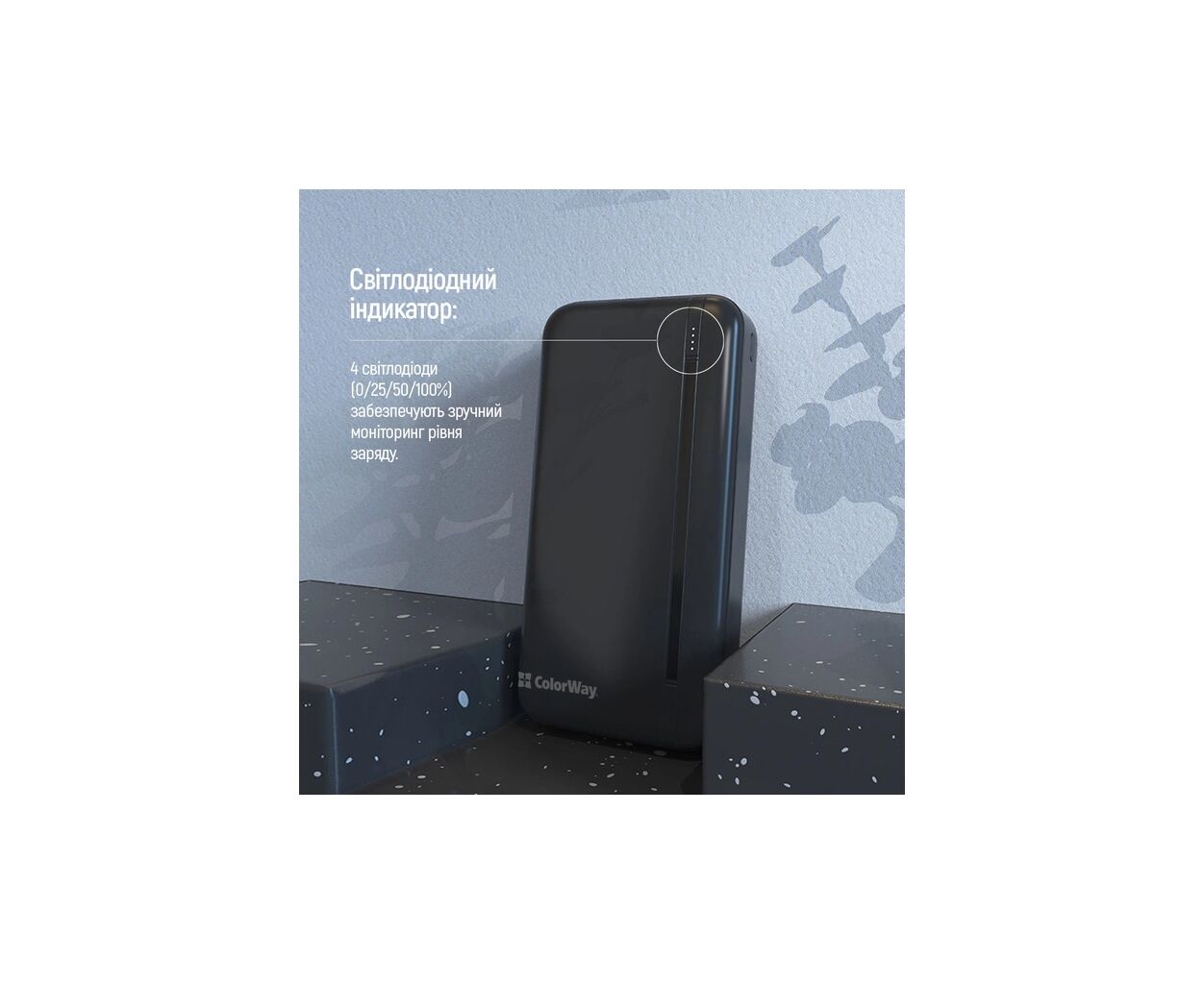 Батарея универсальная ColorWay 20 000 mAh Portable Charger (USB/QC3.0 + USB-C/PD/22.5W) Black (CW-PB200LPB4BK-PD)