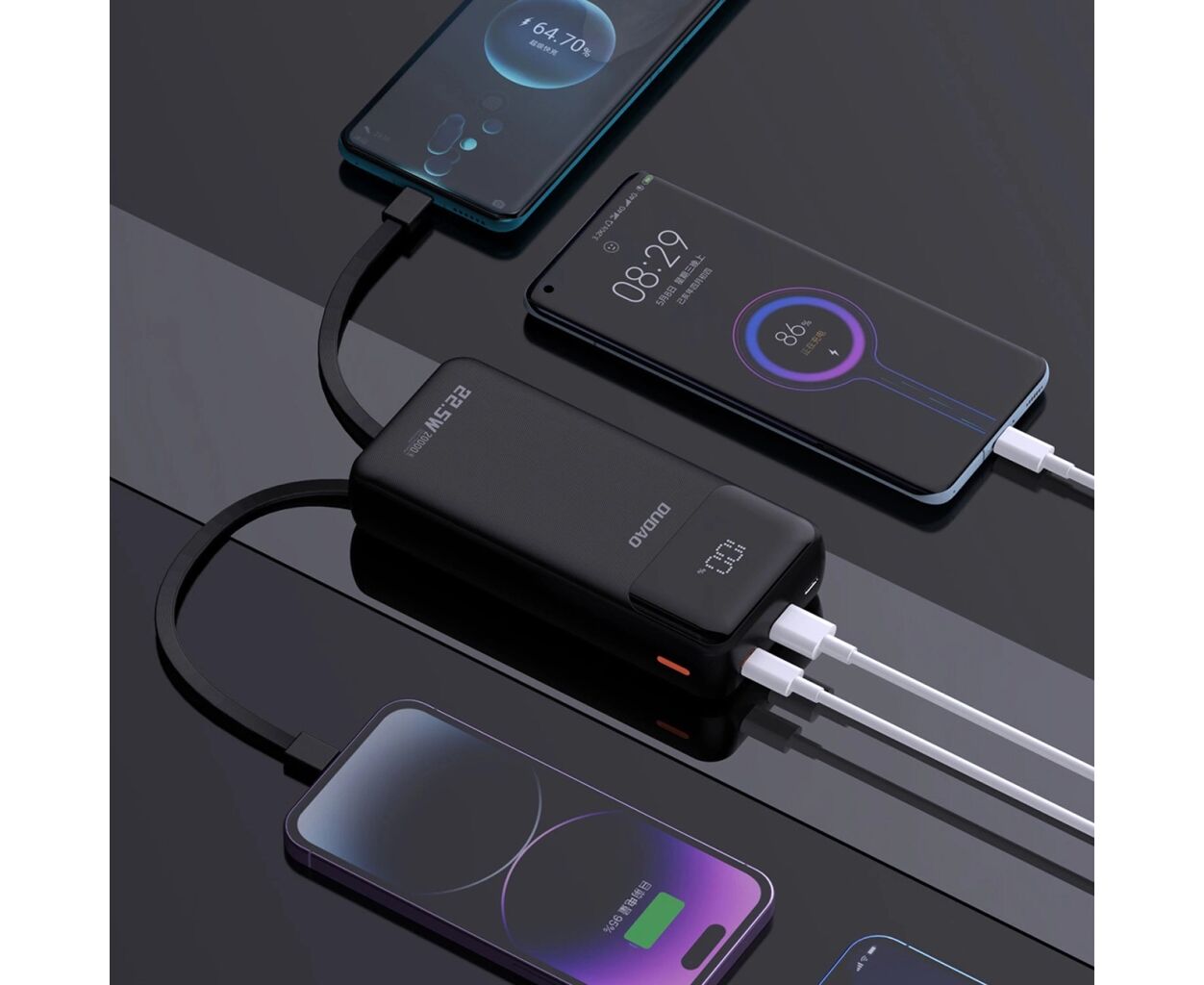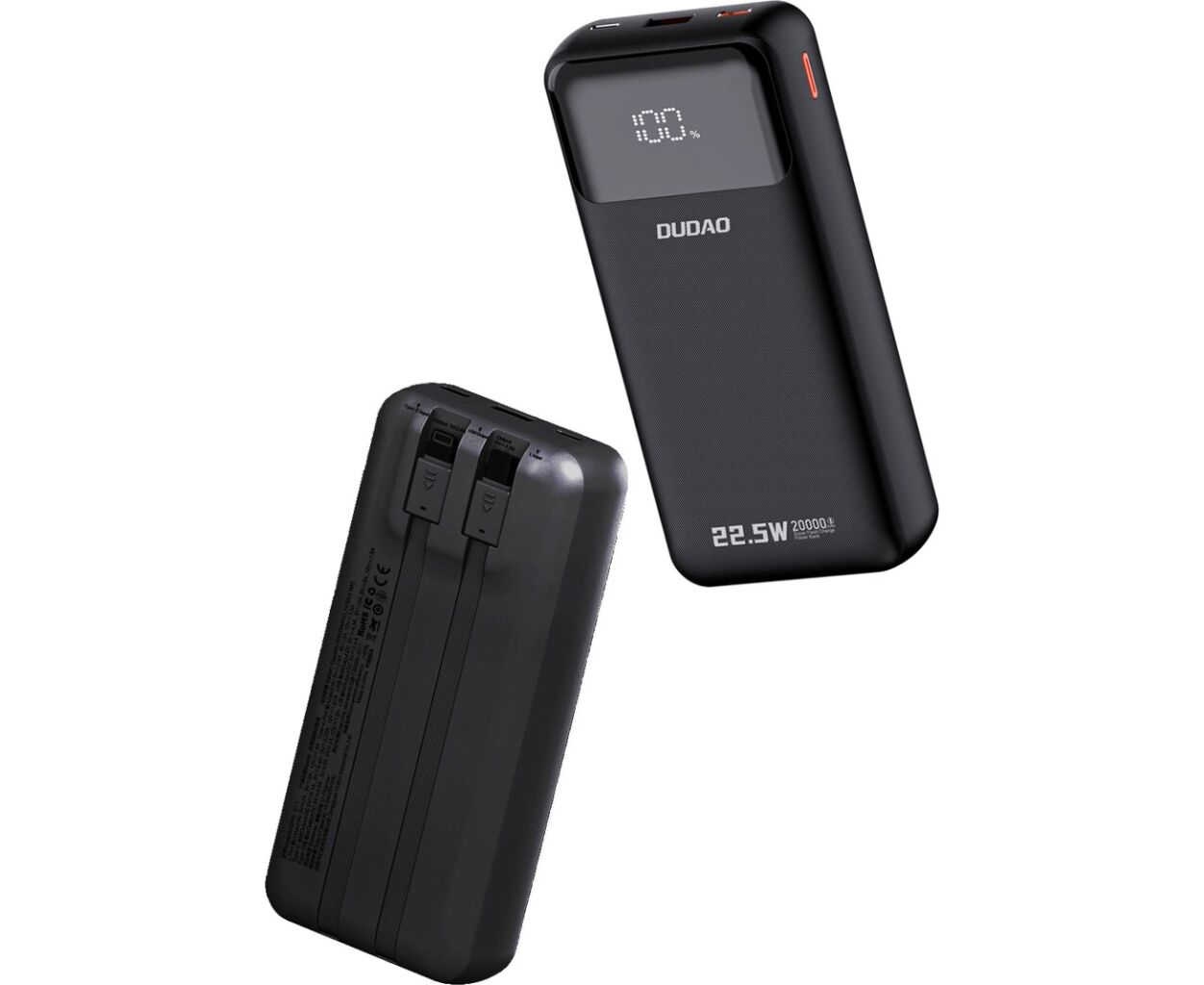 Описание Батарея универсальная Dudao K15Pro 20000mAh PD/22.5W, QC, with built-in cables, Black (6977196682430)