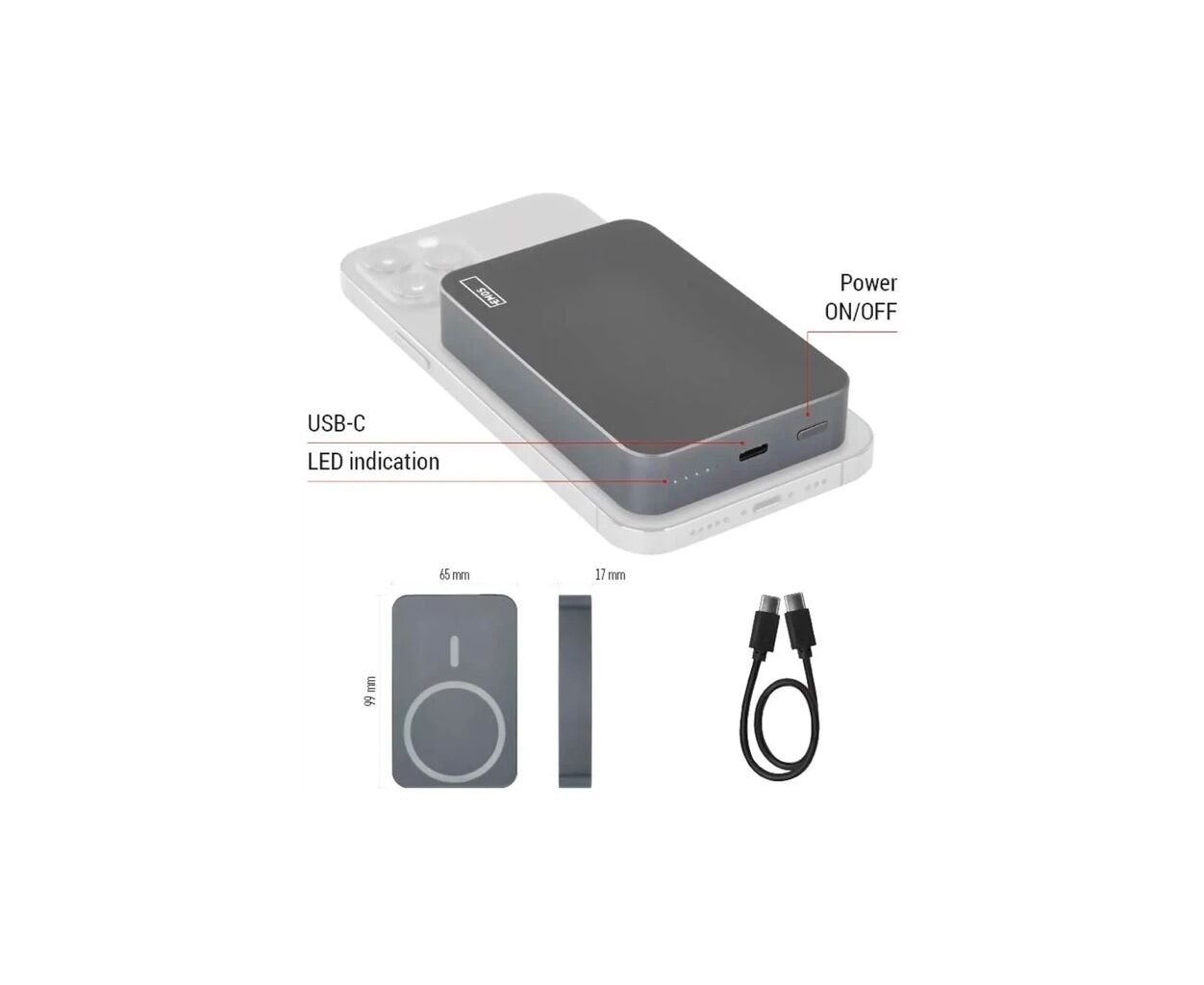Характеристики Батарея универсальная EMOS 10000mAh WI1046, 20W, Wireless, grey (B0551GY)