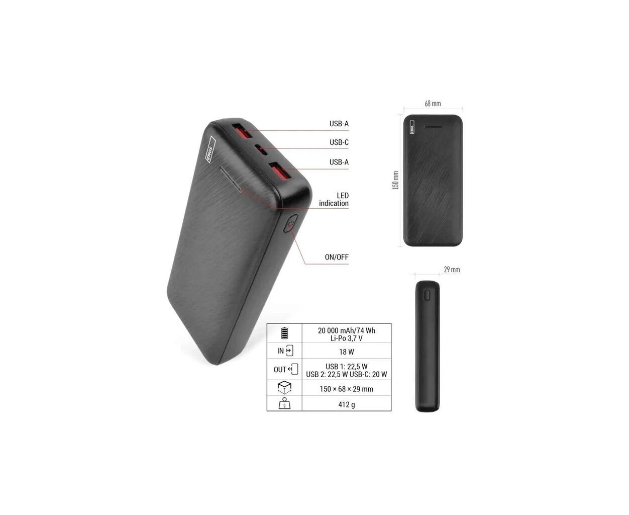 Батарея универсальная EMOS 20000mAh AlphaQ3, 22.5W, black (B0572B)