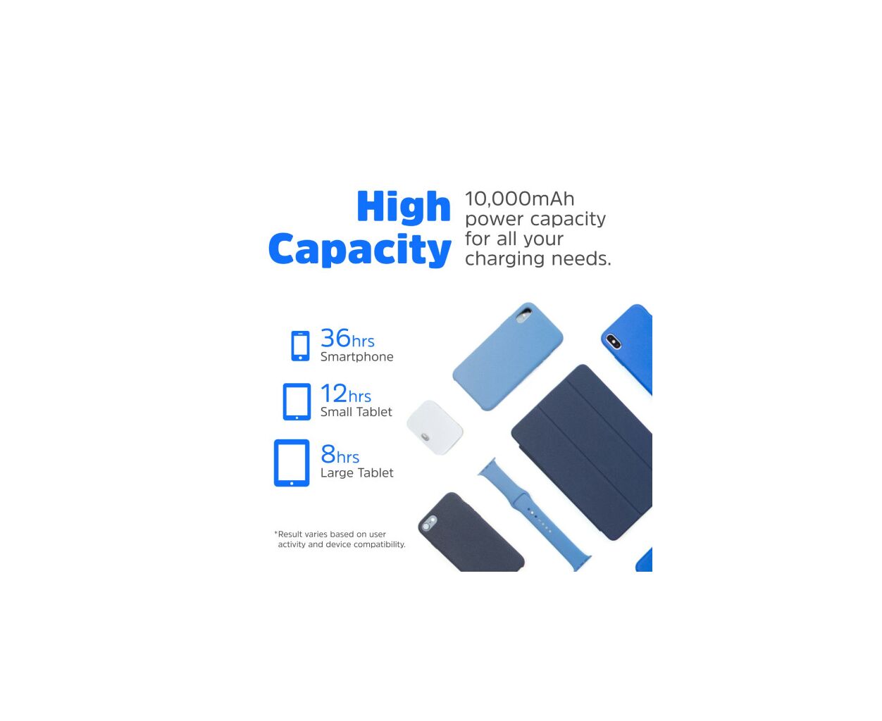 Ёмкость - 10000 mAh, выходной ток - 3 A, размер - 86 x 86 x 31 мм, вес - 252 г