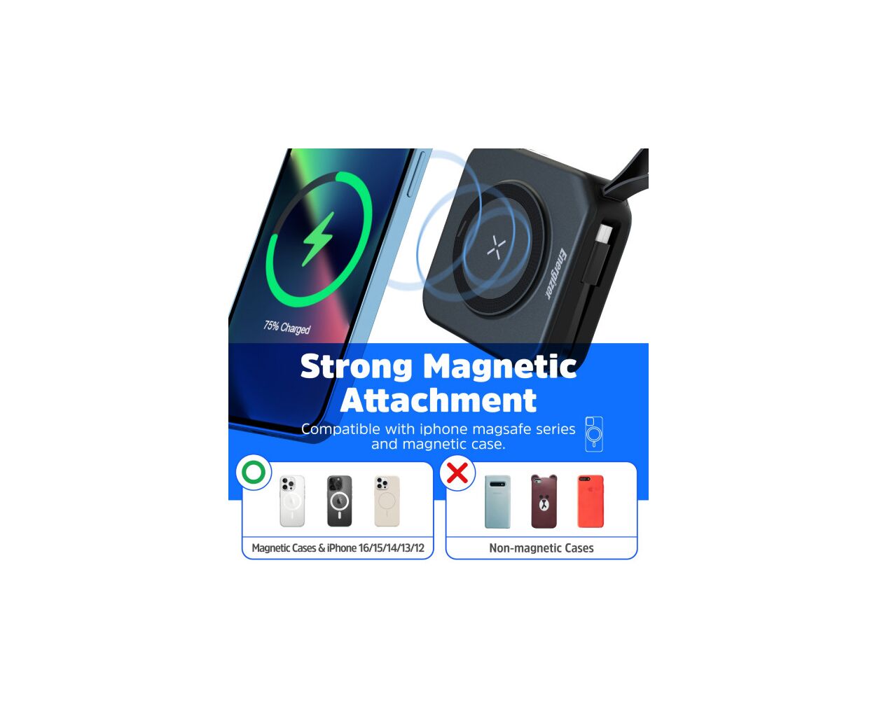 Описание Батарея универсальная Energizer Magnetic Wireless 10000mAh 20W PD, AC зарядка, QI/15W, built-in USB-C (QM10001AC)