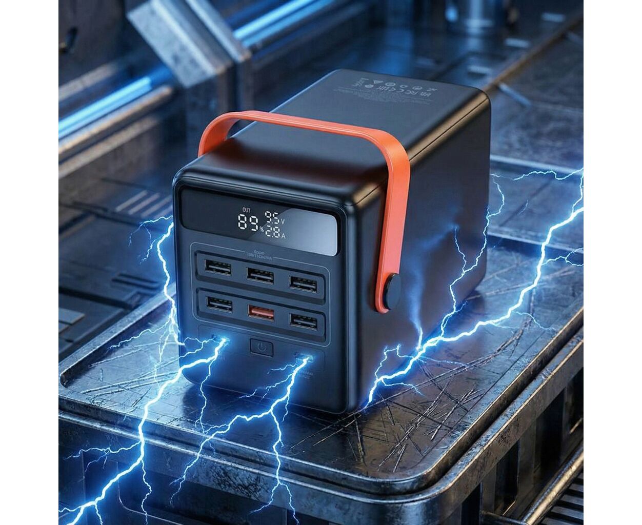 На корпусе расположен LED-дисплей, точно показывающий уровень заряда, и 15 LED-ламп, обеспечивающих яркое освещение даже в полной темноте. Прочный корпус из огнестойкого ABS+PC гарантирует надежность и долговечность в любых условиях.