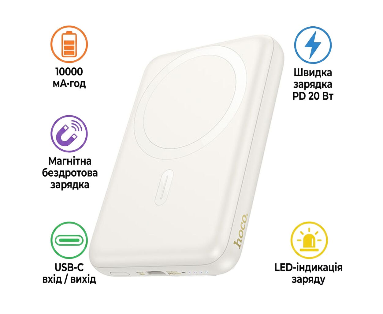 Батарея универсальная HOCO 10000mAh Grace PD/20W Magnetic White (J141 / 714985)