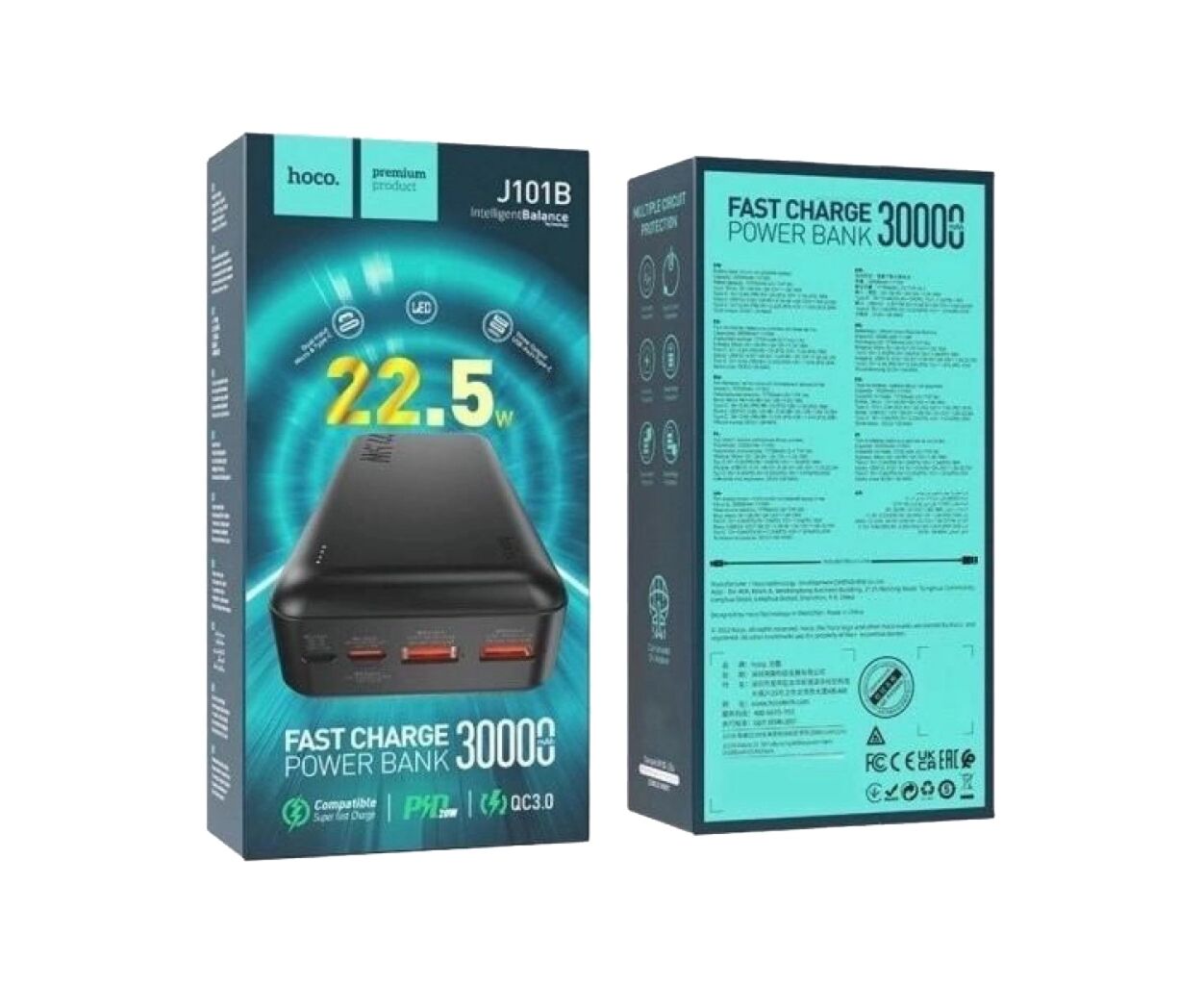 Hoco J101B Astute – это надежный и вместительный внешний аккумулятор для тех, кто много времени проводит в пути или не имеет доступа к розетке. Емкость 30 000 mAh позволяет многократно заряжать смартфоны, планшеты, наушники и другие гаджеты.