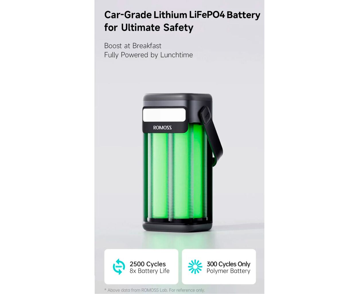 электрохимическая система - LiFePo4, Источник заряда батареи - USB, интерфейсы подключения (выход) - USB Type-C, USB, размер - 19 x 9.4 x 7.5 см, вес - 1.4 кг, Цвет - черный