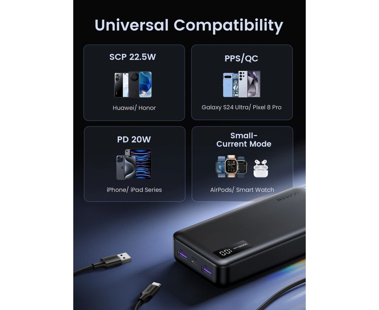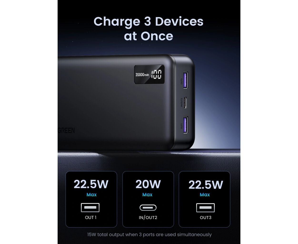 Описание Батарея универсальная Ugreen 20000mAh 20W Two-way Fast Charging (PB312 25683)
