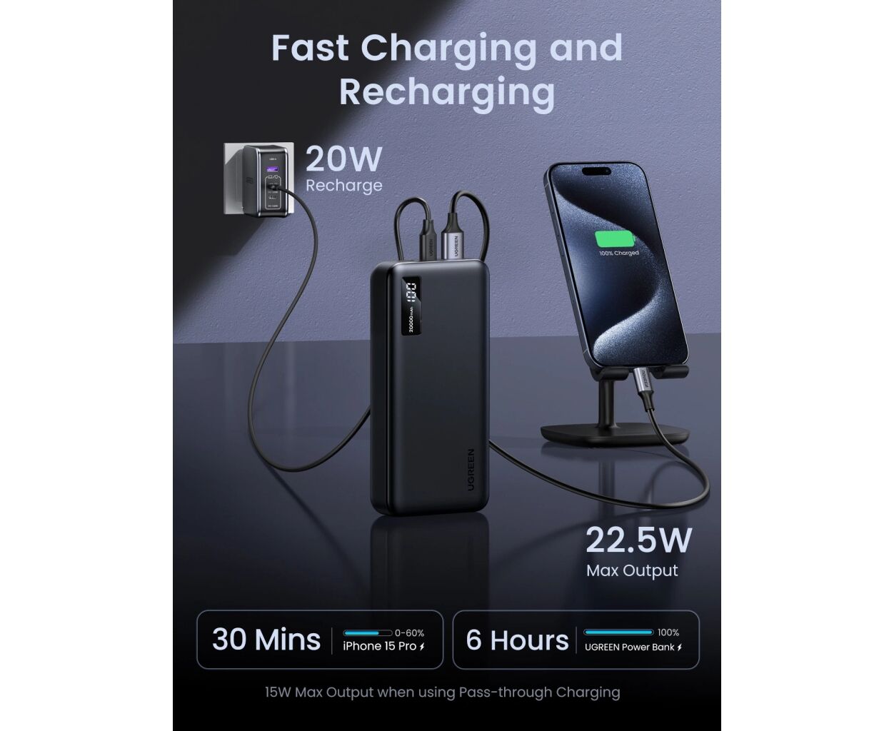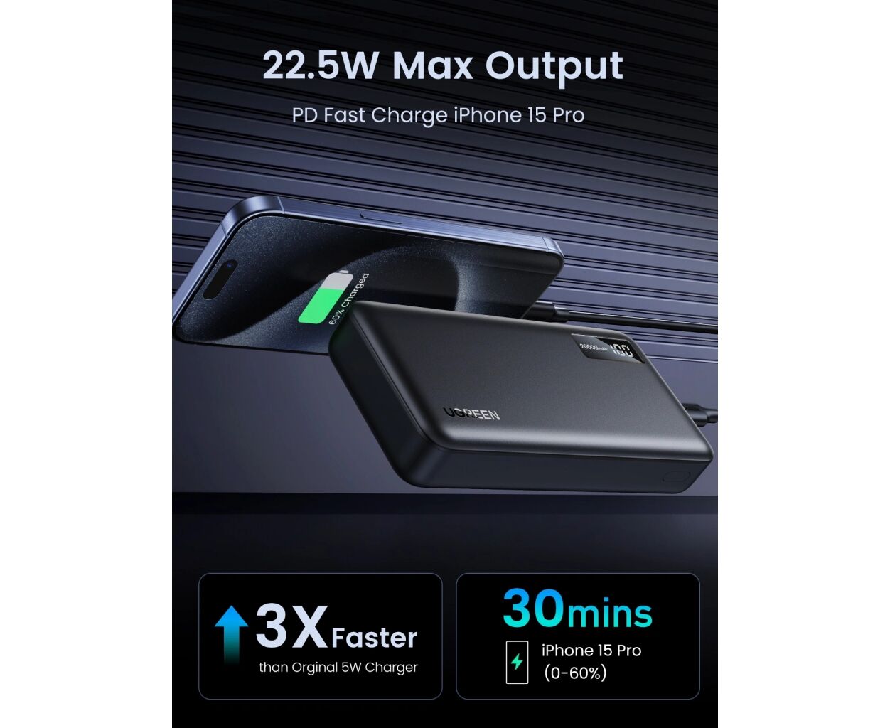 Характеристики Батарея универсальная Ugreen 20000mAh 20W Two-way Fast Charging (PB312 25683)