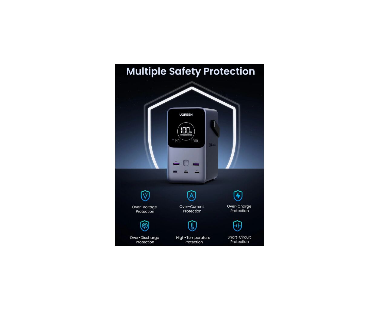 Встроенная защита от перегрузки по току, перенапряжению, перезарядке, переразрядке, перегреву и короткому замыканию делает батарею Ugreen 48000mAh 300W PB770 безопасной для вас и ваших устройств.