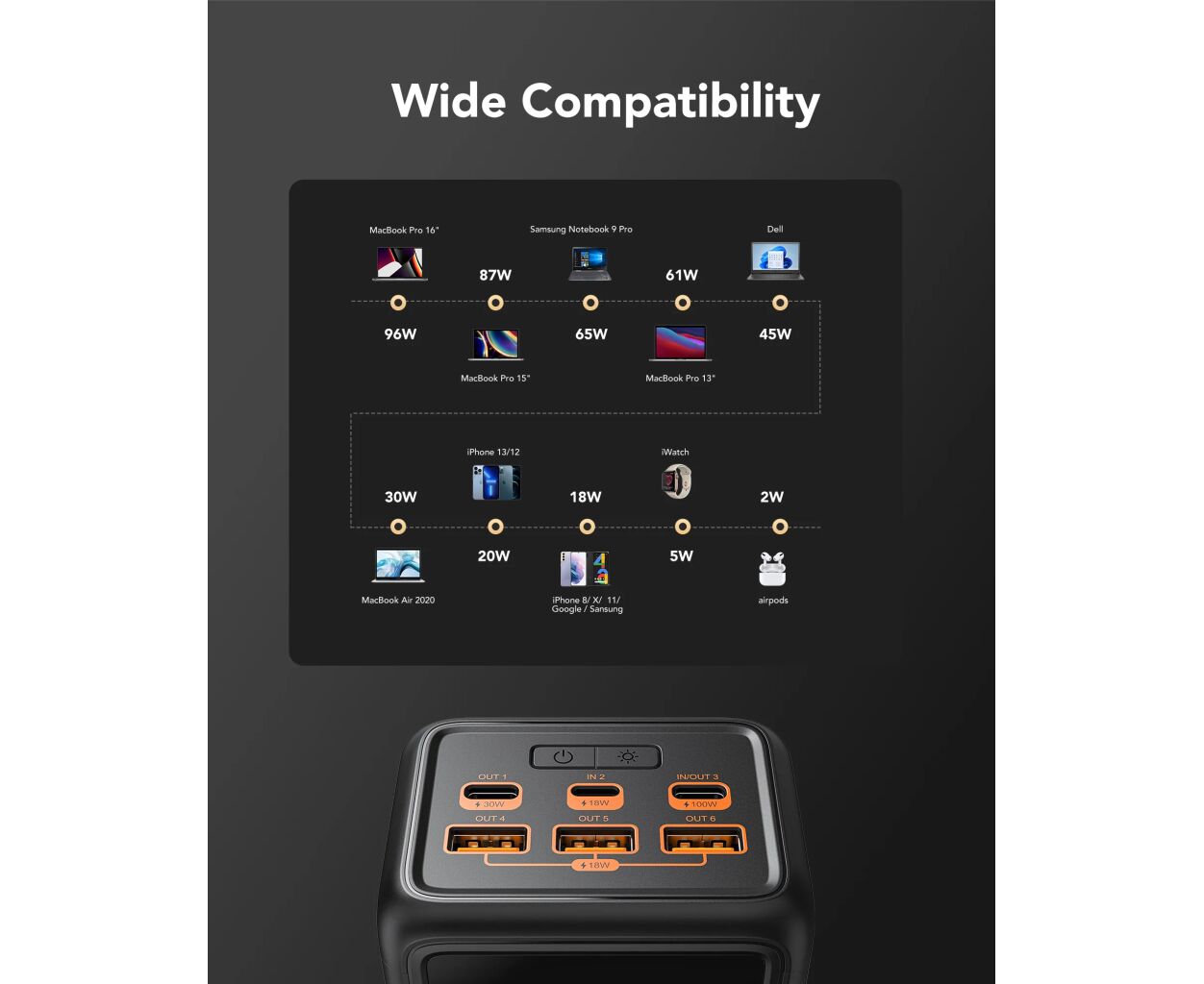56000mAh W5001C Tank 100W, PD, QC, Black
