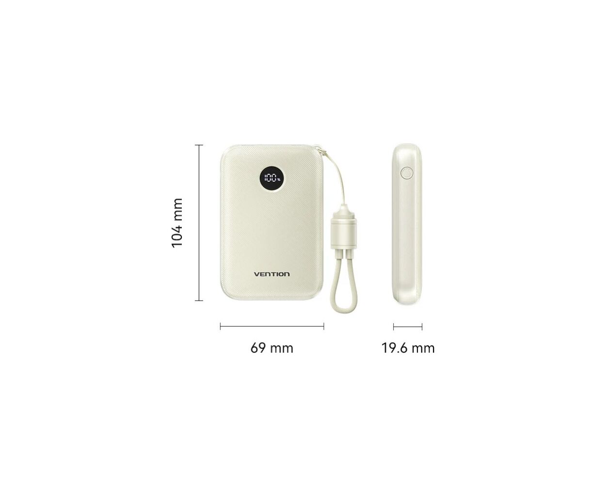 Батарея универсальная VENTION 10000mAh 22,5W Fast Charging, USB-A, 2xUSB-C Beige (FKAN0-C)