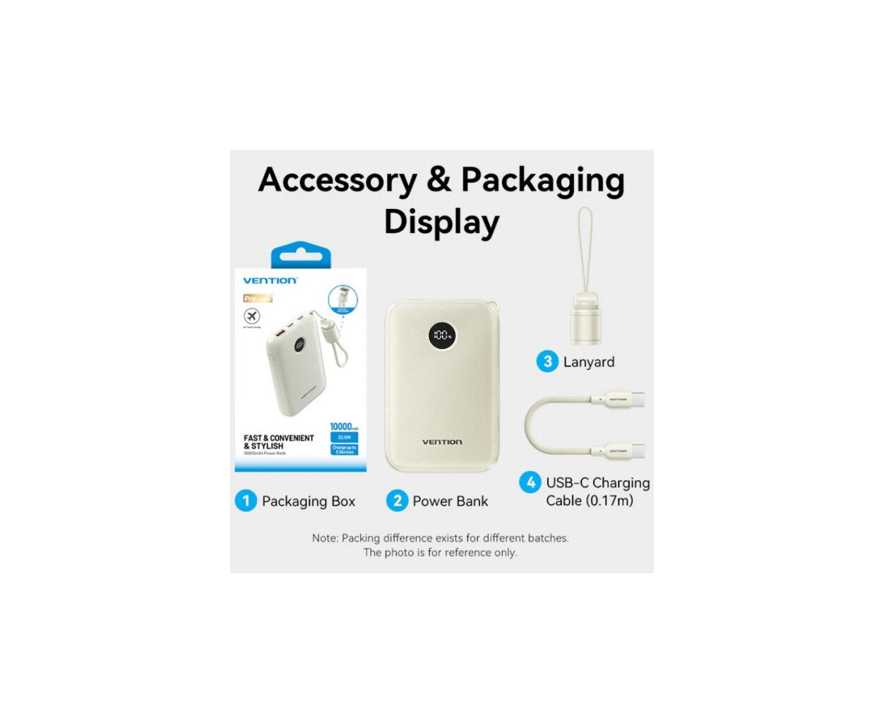 Описание Батарея универсальная VENTION 10000mAh 22,5W Fast Charging, USB-A, 2xUSB-C Beige (FKAN0-C)