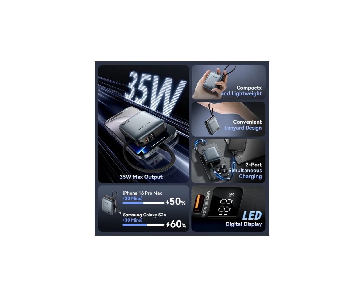 10000mAh 35W 3A PD, Type-C in/out, Built-in USB-C