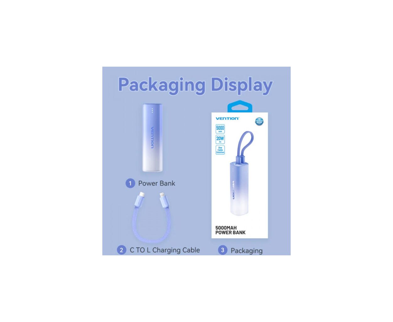 Батарея универсальная VENTION 5000mAh 20W PD, USB-C In/Out, Lightning In/Out, with cable, Gradient Blue (FHWL0)