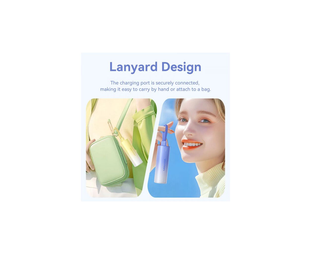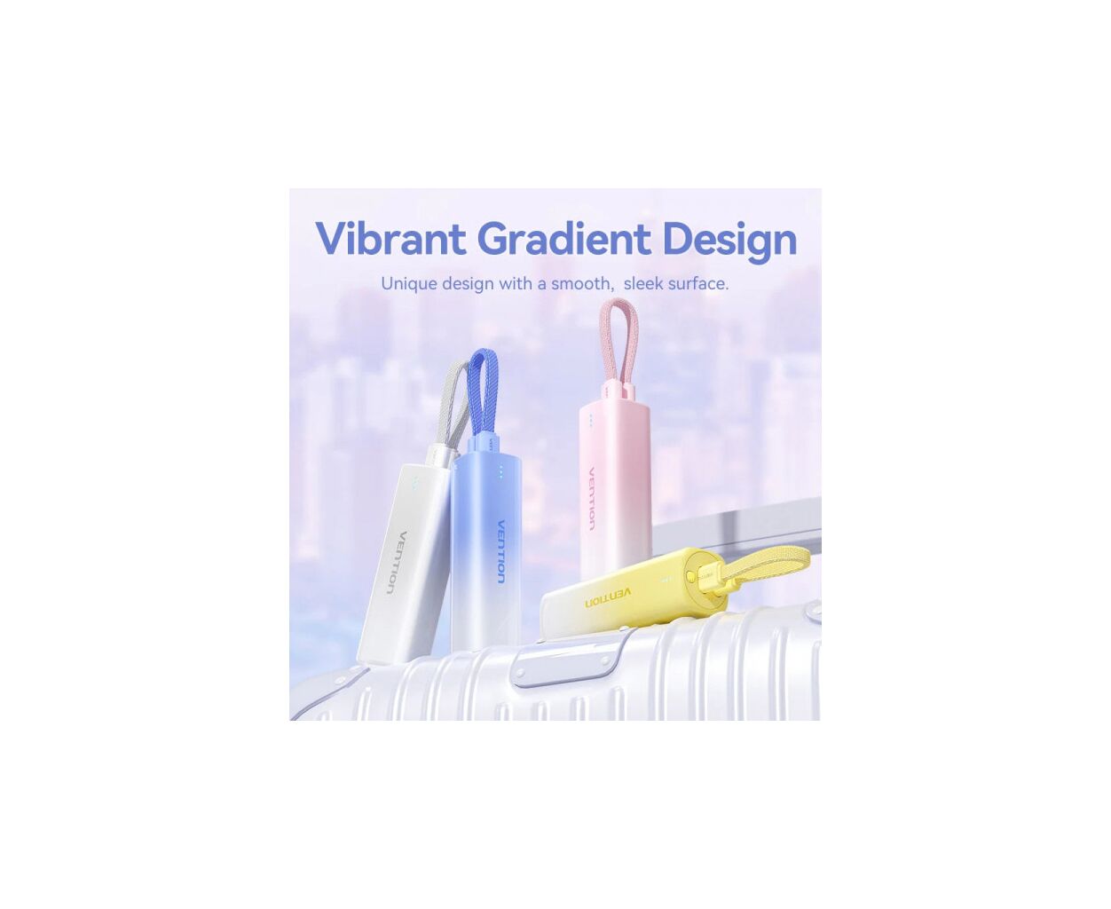 Описание Батарея универсальная VENTION 5000mAh 20W PD, USB-C In/Out, Lightning In/Out, with cable, Gradient Yellow (FHWY0)