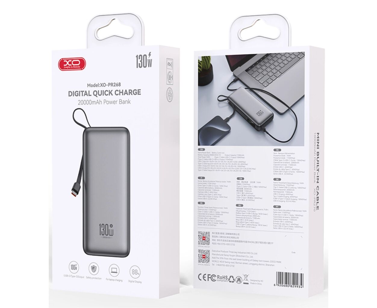 Батарея универсальная XO 20000mAh 130W, PD, QC (XO-PR268_grey)