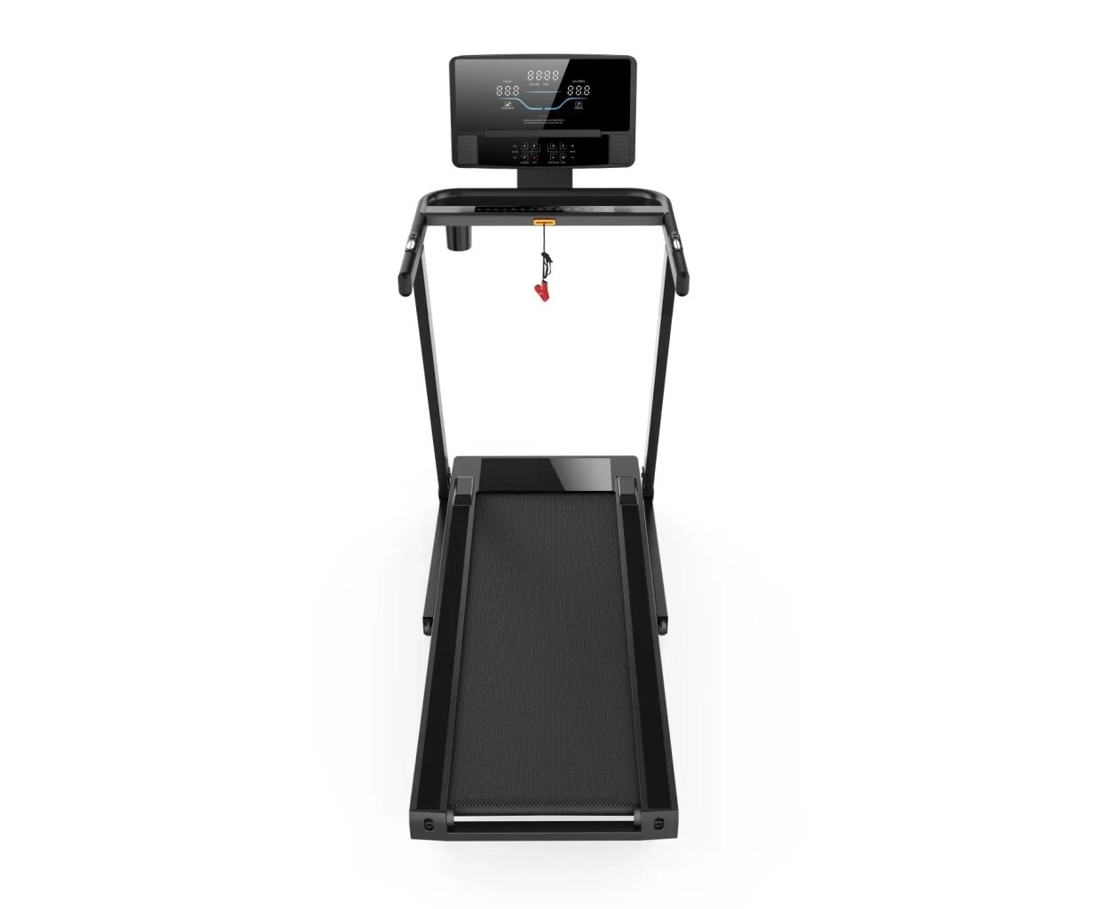 Система безопасности с предохранительным ключом: для обеспечения безопасности во время тренировки беговая дорожка оснащена предохранительным ключом, подключаемым к одежде. В случае чрезвычайной ситуации, когда вы должны немедленно остановить тренажер, достаточно потянуть за ключ и беговая лента мгновенно остановится.