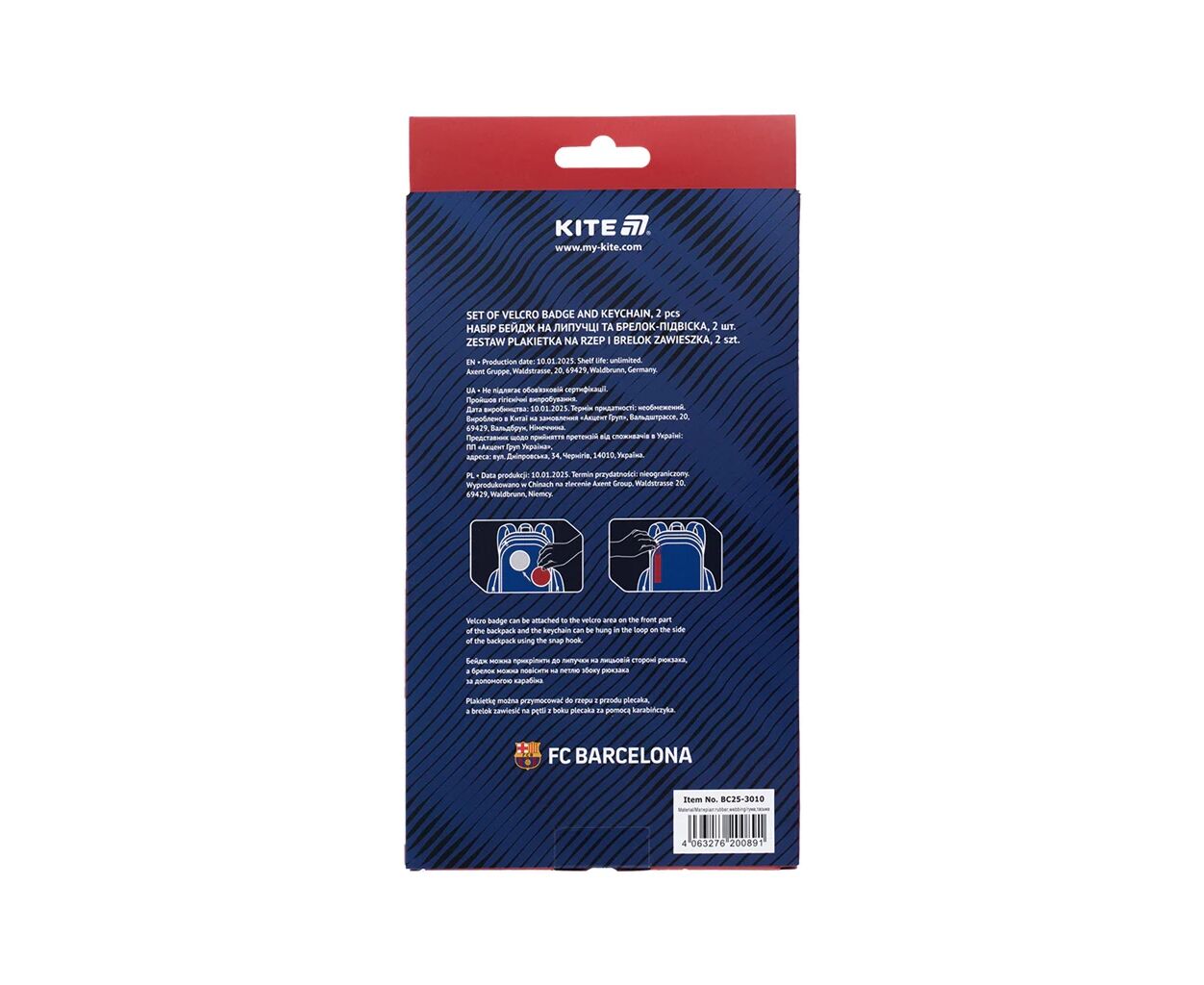 Описание Бейдж Kite набор на липучке и подвеска FC Barcelona, 2 шт (BC25-3010)