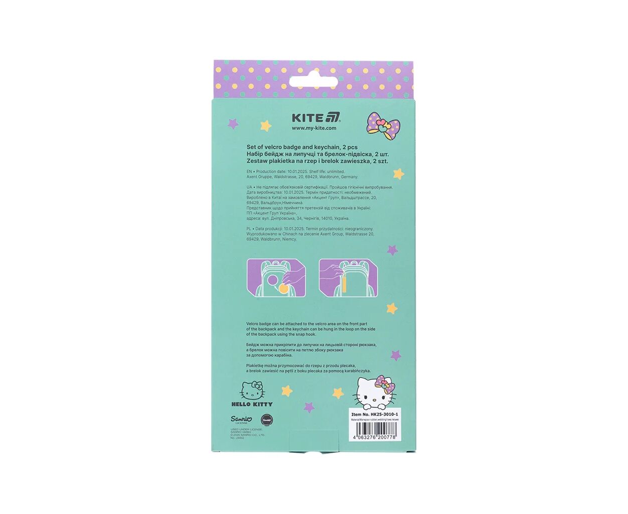 Описание Бейдж Kite набор на липучке и подвеска Hello Kitty (HK25-3010-1)