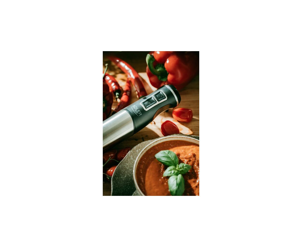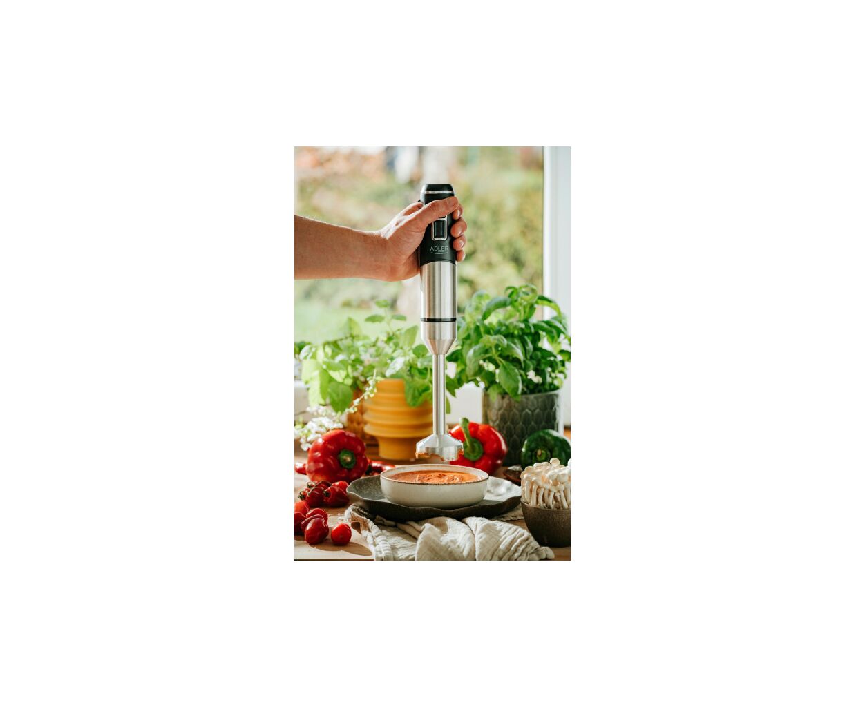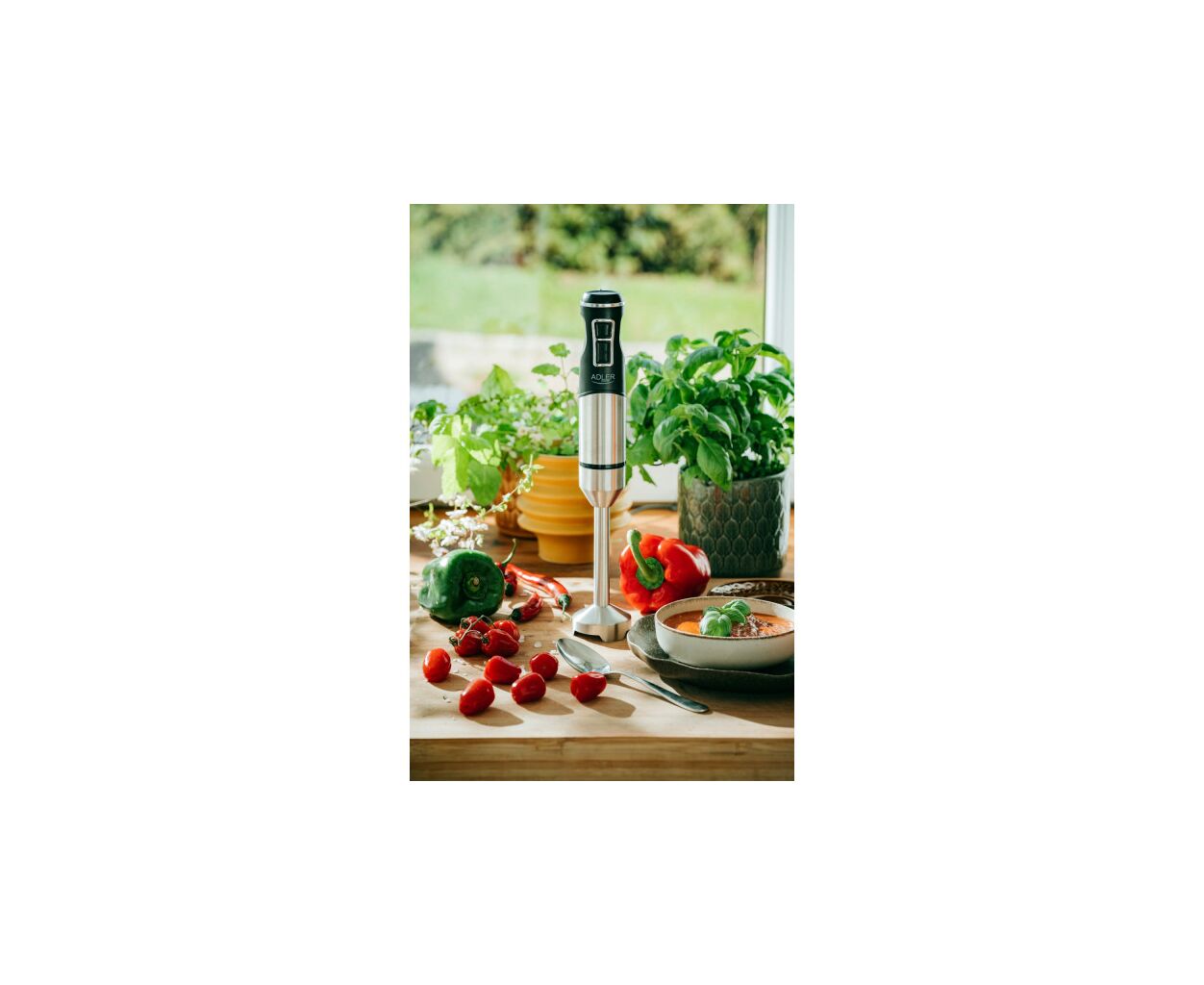 Ручной погружной блендер Adler AD 4628 мощностью 1500 Вт – многофункциональное кухонное устройство для быстрого измельчения и смешивания ингредиентов для самых вкусных блюд.