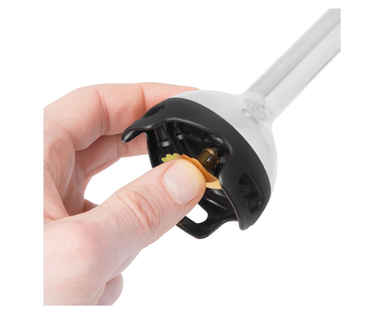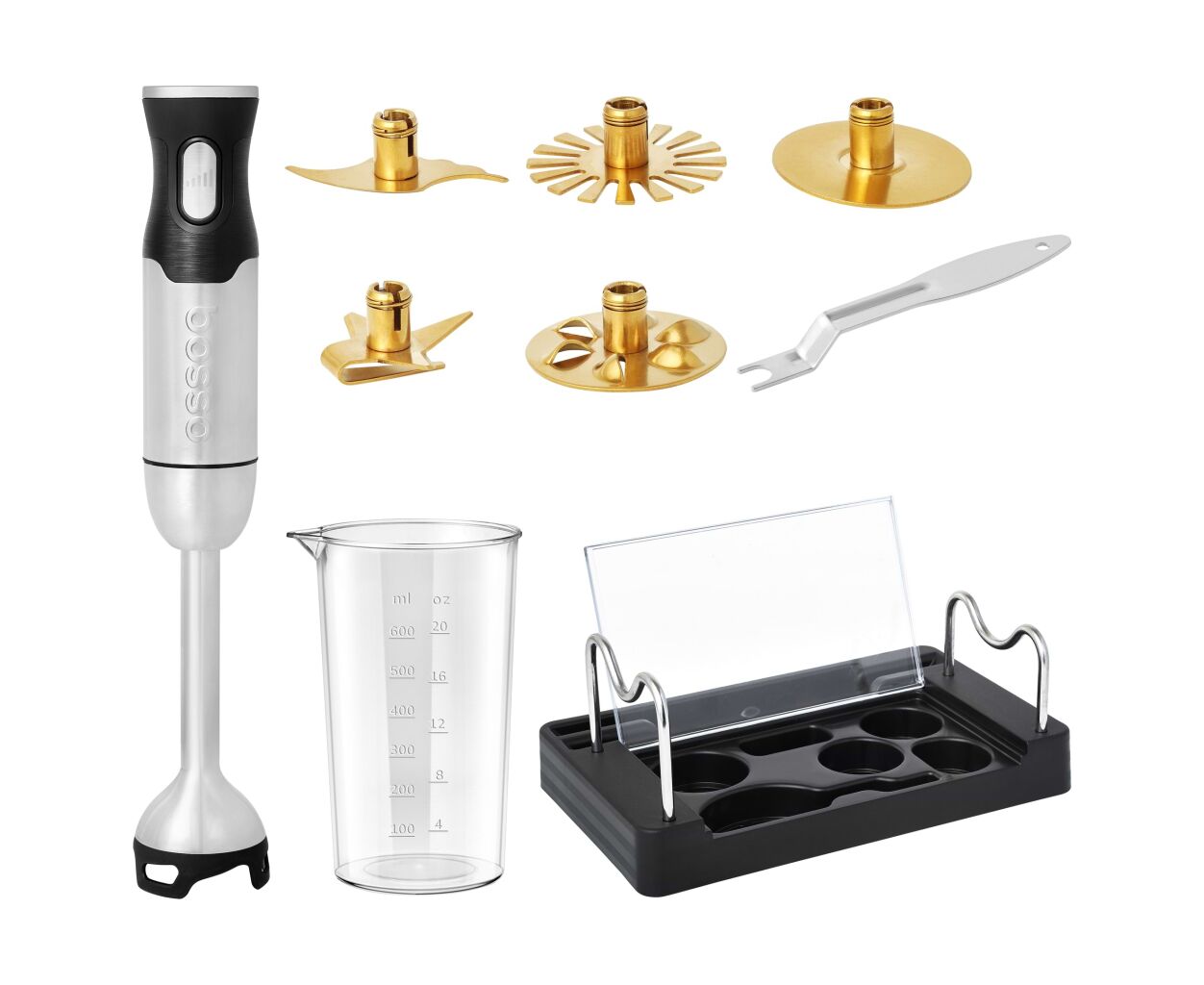 Этот блендер оснащен несколькими насадками, среди которых нож для измельчения, насадка-венчик и насадка-блендер. Такой богатый комплект делает его идеальным для взбивания, измельчения и смешивания. Специально разработанный мерный стакан объемом 0.6 л помогает точно отмерять ингредиенты, благодаря чему вы сможете легко приготовить идеальные коктейли или соусы.