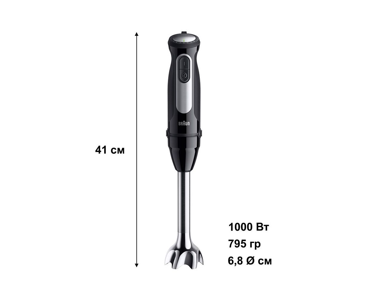 погружной, 1000 Вт, с измельчителем, Емкость мини-измельчителя - 500 мл, количество скоростей - 25, 208 х 68 х 62 мм, 0.6 кг, черный