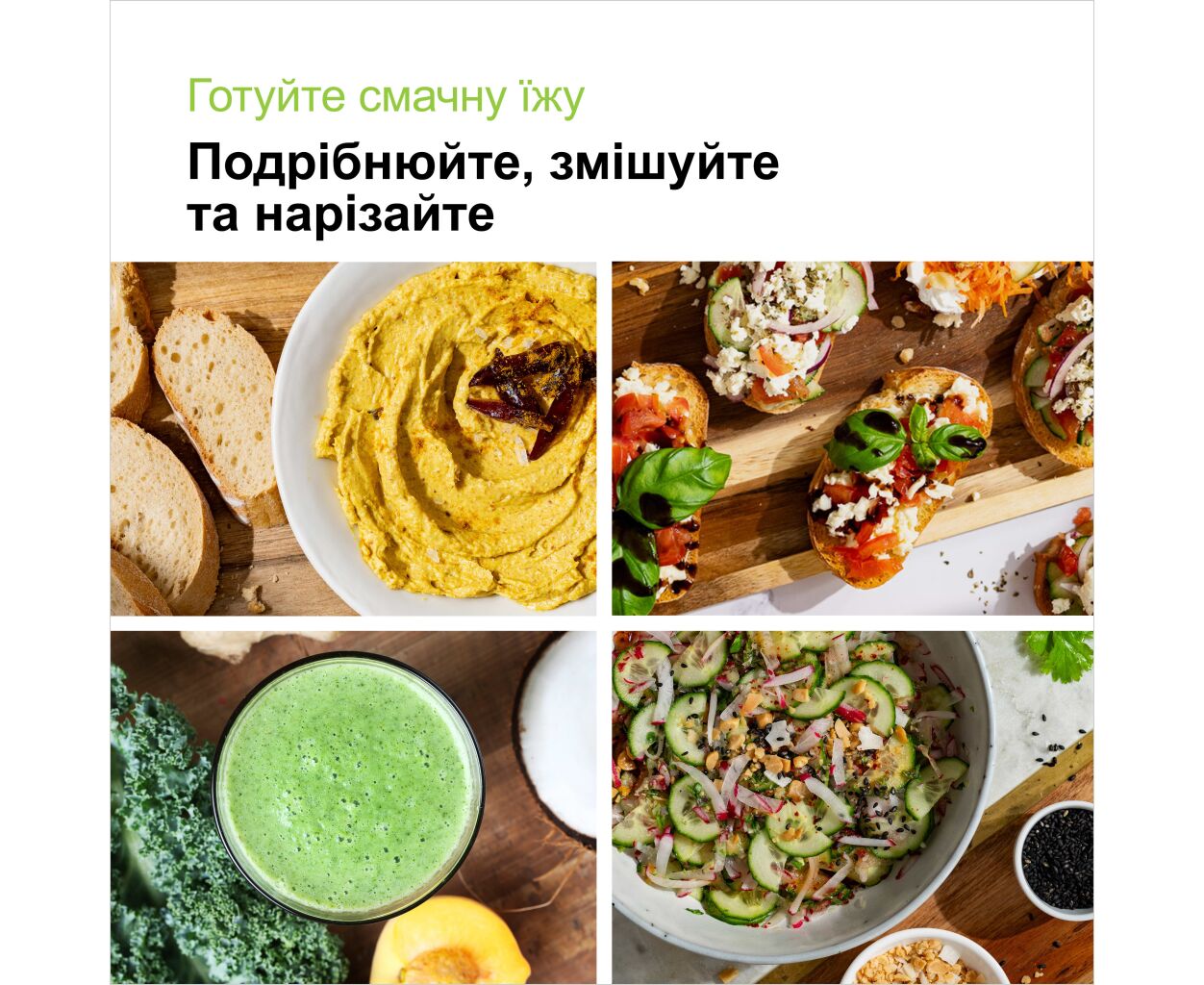 В комплект входит: - моторный блок с системой EasyClick Plus (Type: HB501BI); металлическая блендерная ножка с острыми ножами из нержавеющей стали, выполненная по технологии PowerBell VPlus и SplashControl; насадка измельчителя на 500 мл (Type: MC); крышка-редуктор мини-кухонный комбайн для насадки измельчитель на 500 мл; диск терка/шинковница (тонкая); вставка-измельчитель с диском SizeControl; измельчающий нож; нож для колки льда; венчик для взбивания и перемешивания; мерный стакан с четкой мерной шкалой на 600 мл.