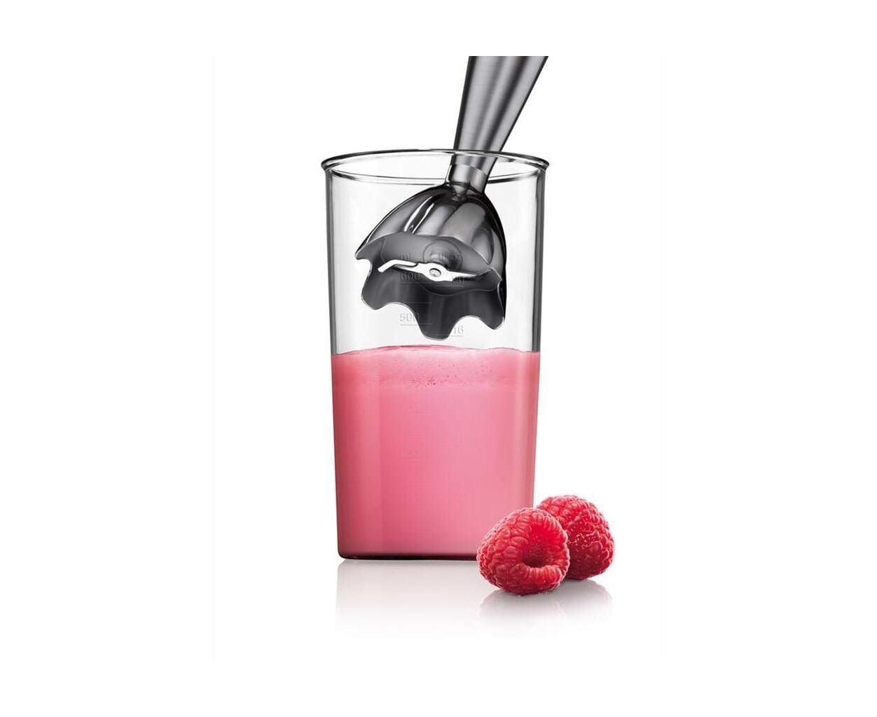 Эргономичный дизайн прибора обеспечивает максимальный комфорт во время использования. Ручка с прорезиненным покрытием надежно лежит в руке, предотвращая выскальзывание даже при интенсивном использовании. Смешивать ингредиенты будет приятно в мерном стакане объемом 0.5 л, который входит в комплект.