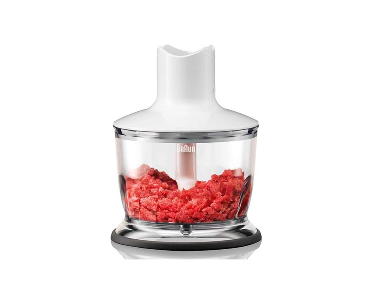 Комплектация блендера поражает своей универсальностью. Кроме стандартной насадки-блендера, в вашем распоряжении также есть насадка-венчик для взбивания и нож для измельчения. В комплект входит мини-измельчитель объемом 500 мл, в котором можно быстро измельчить мясо, орехи или зелень.