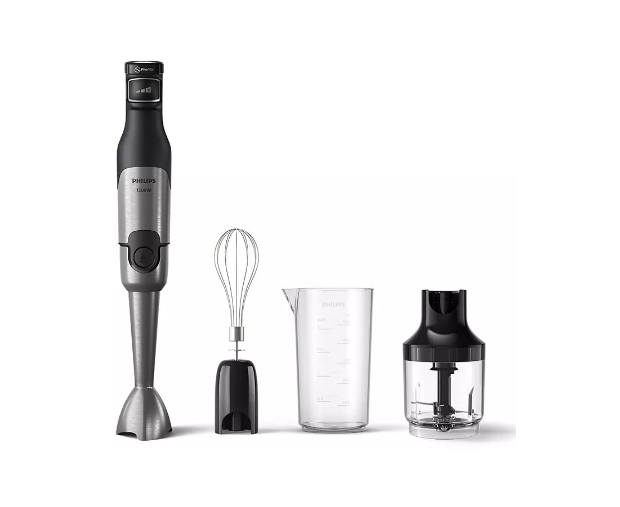 погружной, 1200 Вт, с измельчителем, Емкость мини-измельчителя - 500 мл, количество скоростей - 3, 6,3 х 41 х 7 см, черный, нержавеющая сталь